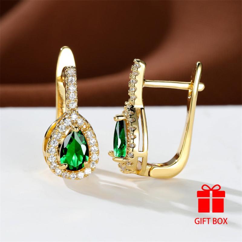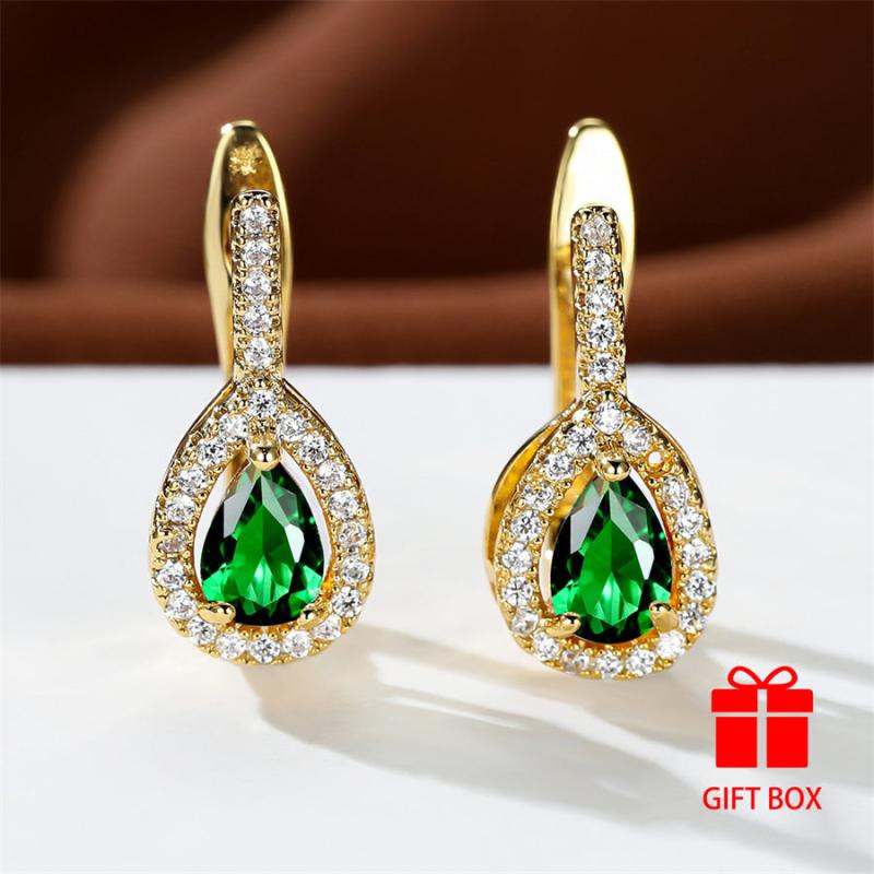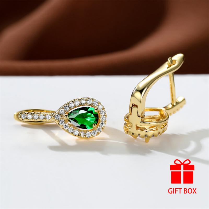 These elegant earrings are crafted with durable green synthetic zirconia, perfect for weddings, parties, holidays, and daily wear.