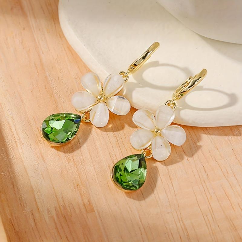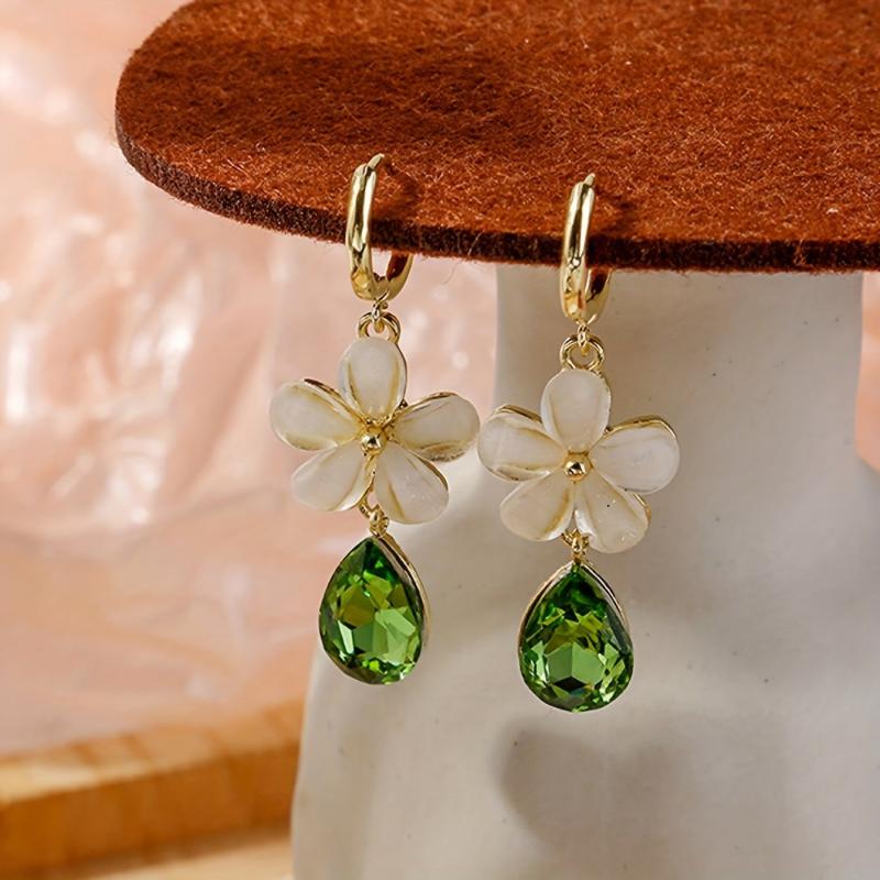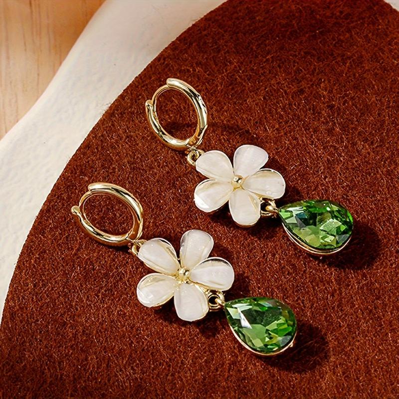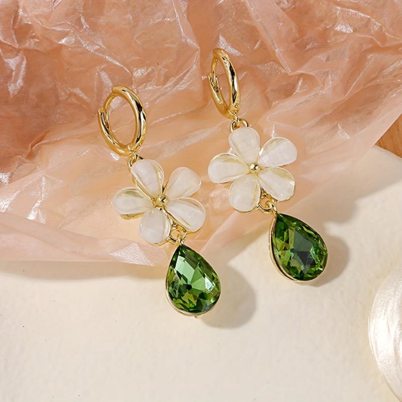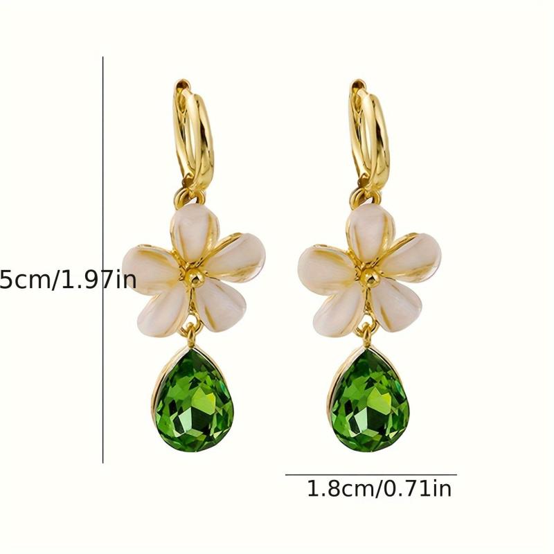 Stay stylish and secure with these green teardrop flower earrings designed to prevent falling off.