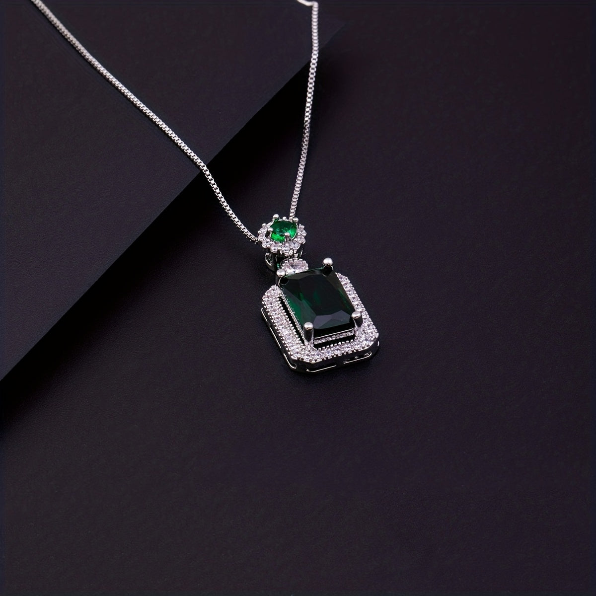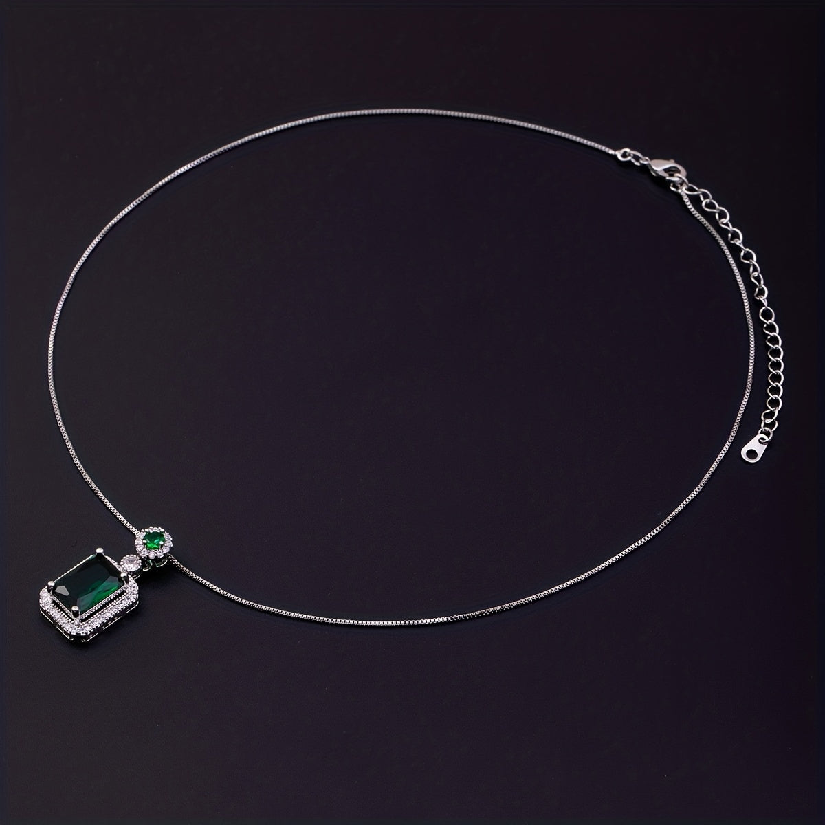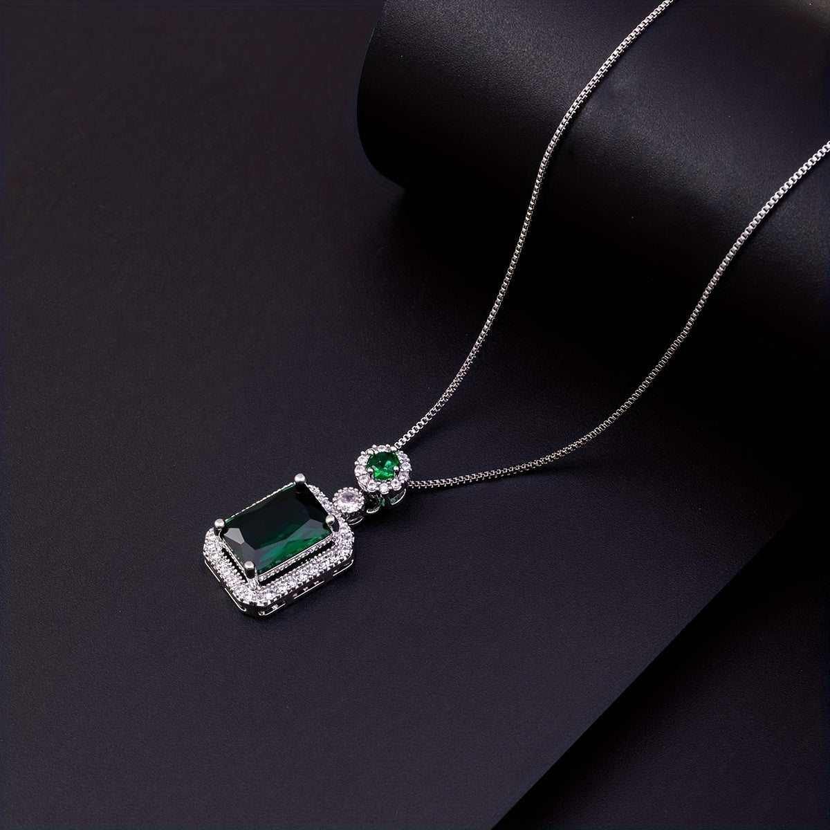 This stunning necklace features a green zircon pendant with artificial diamond zirconia set in a silver chain. Perfect for adding a touch of elegance to any outfit.
