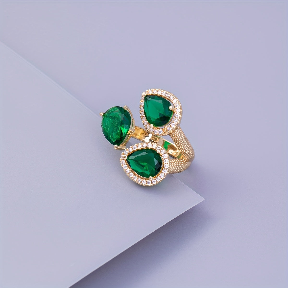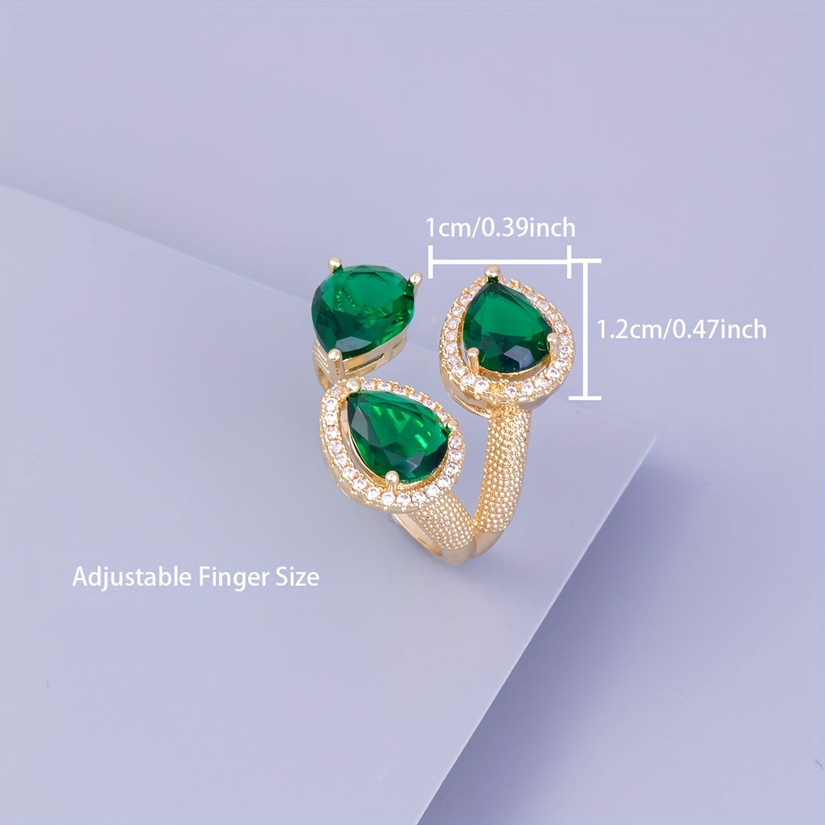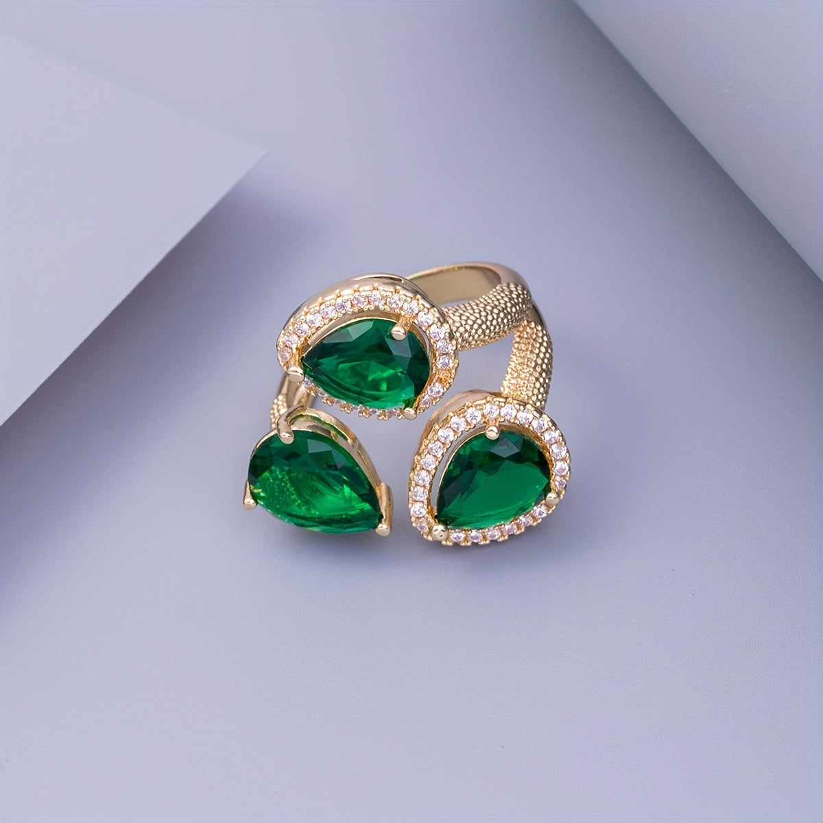 Green Zirconia Water Droplet Shape Ring 18K Golden Plated Adjustable