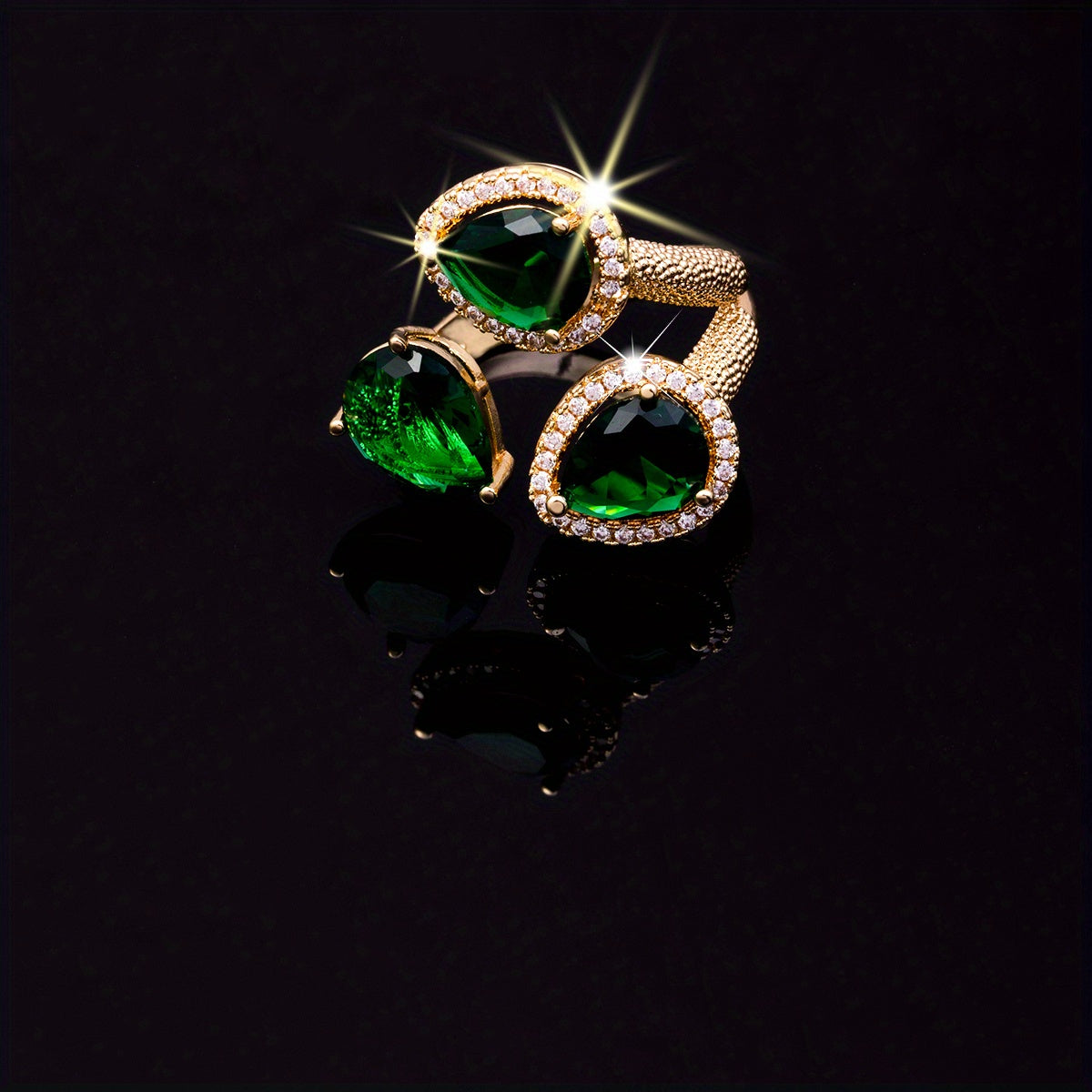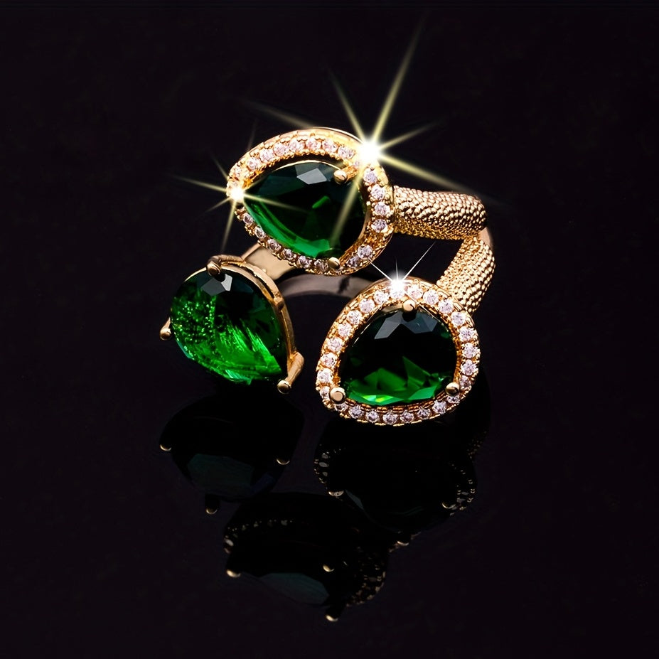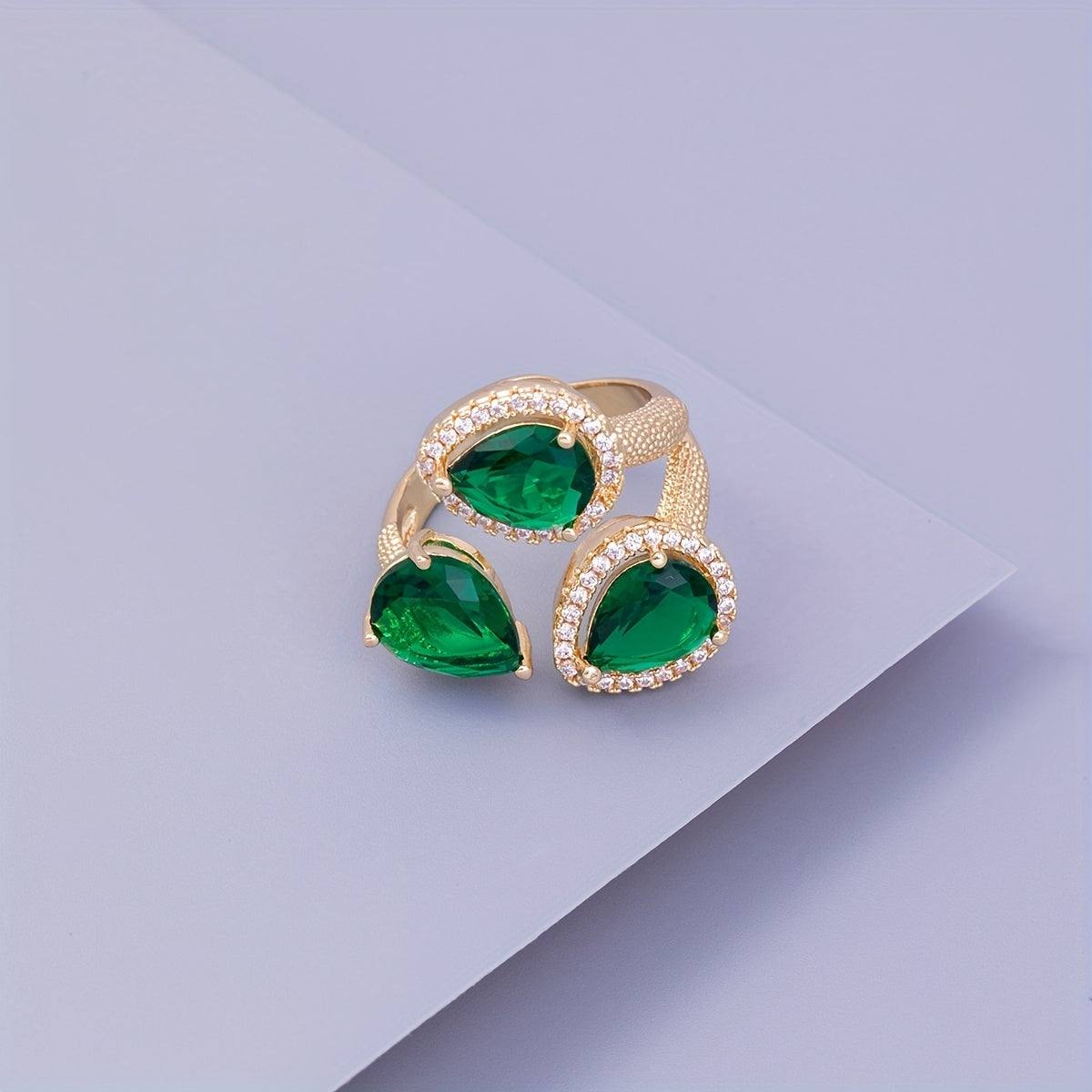 Green Zirconia Water Droplet Shape Ring 18K Golden Plated Adjustable