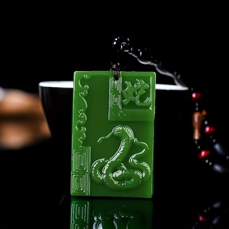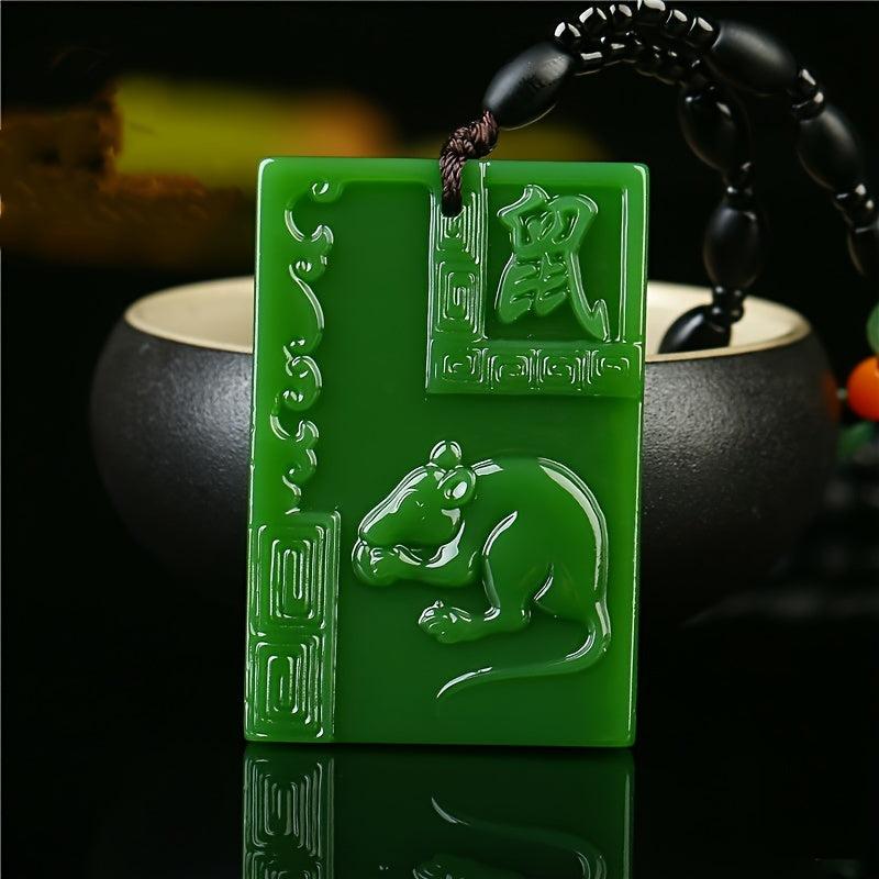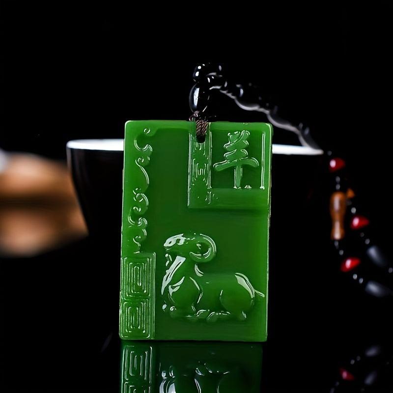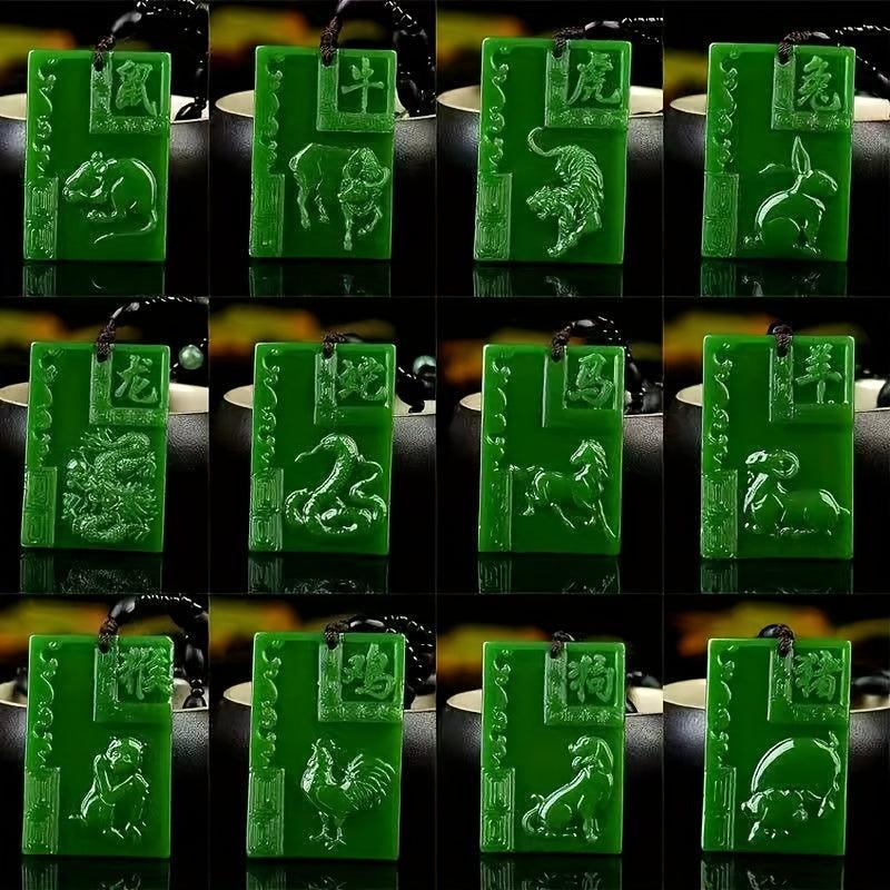 This stylish pendant is crafted with natural stone and features a green zodiac sign design. It comes with a matching chain, making it perfect for both men and women to wear with sweaters.
