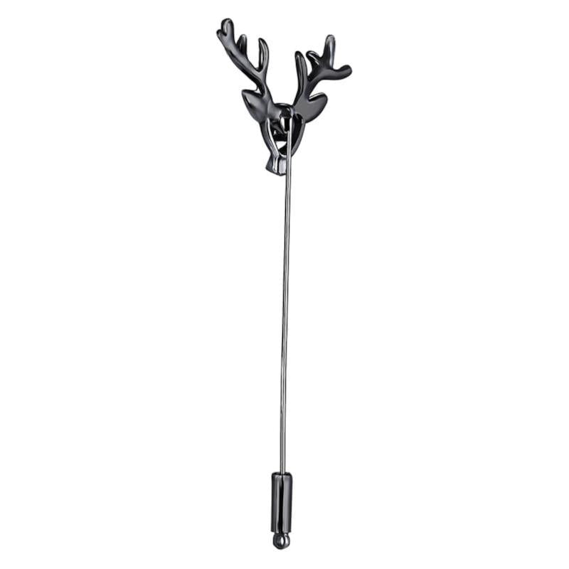 Add a touch of elegance to your outfit with this gun metal plated deer shaped lapel pin brooch, perfect for weddings and formal events.
