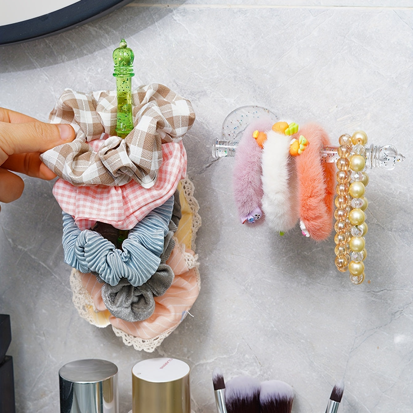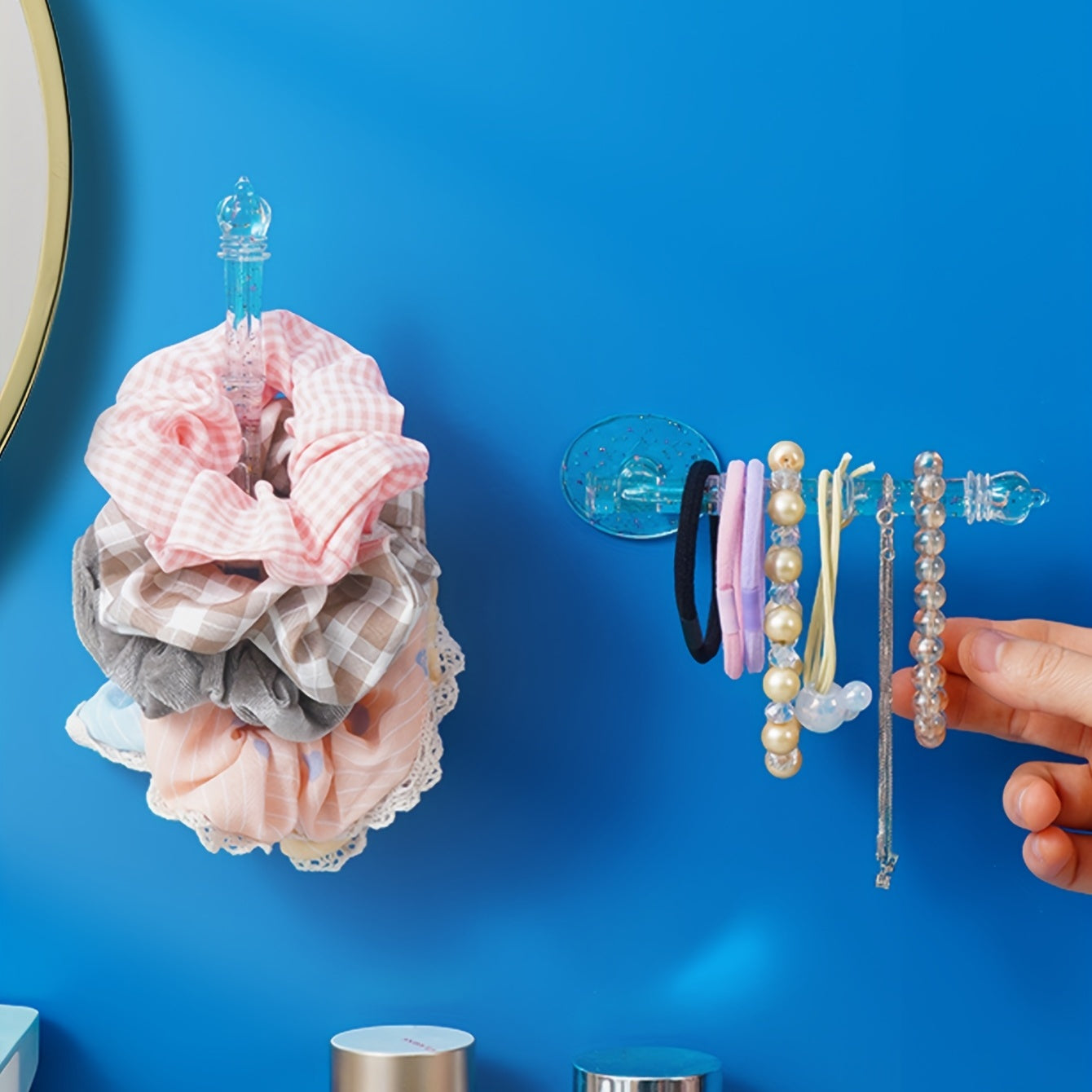 Keep your hair accessories organized and easily accessible with this functional wall-mounted storage hook. Perfect for storing hair ropes and rings.