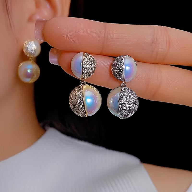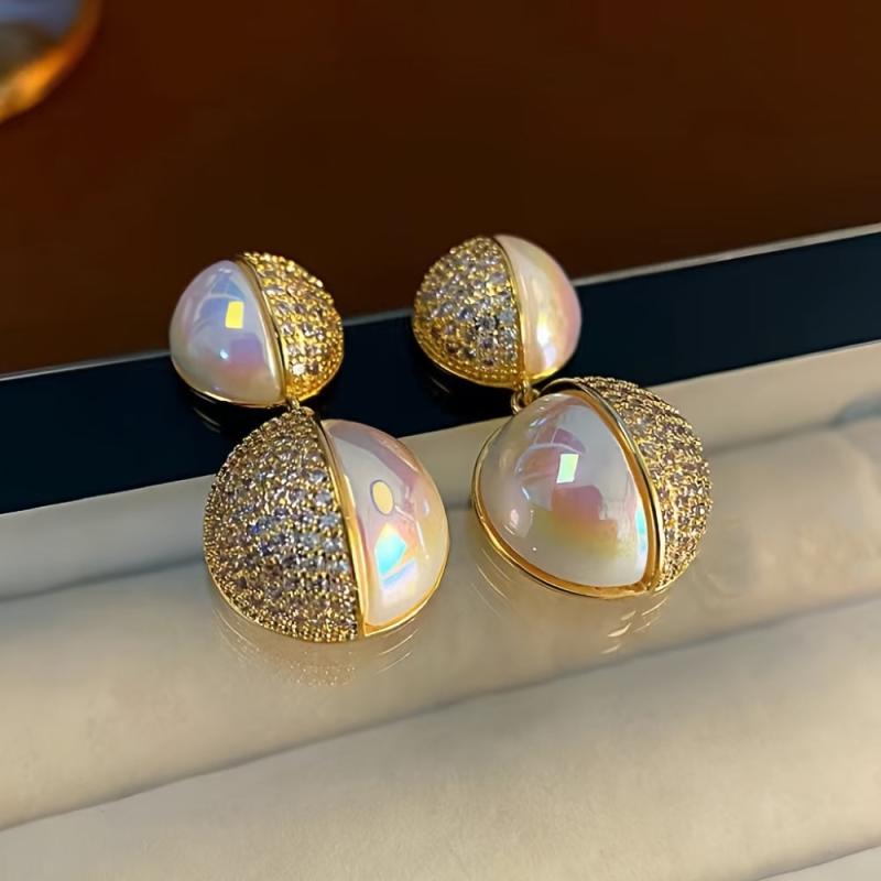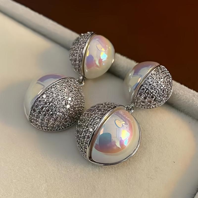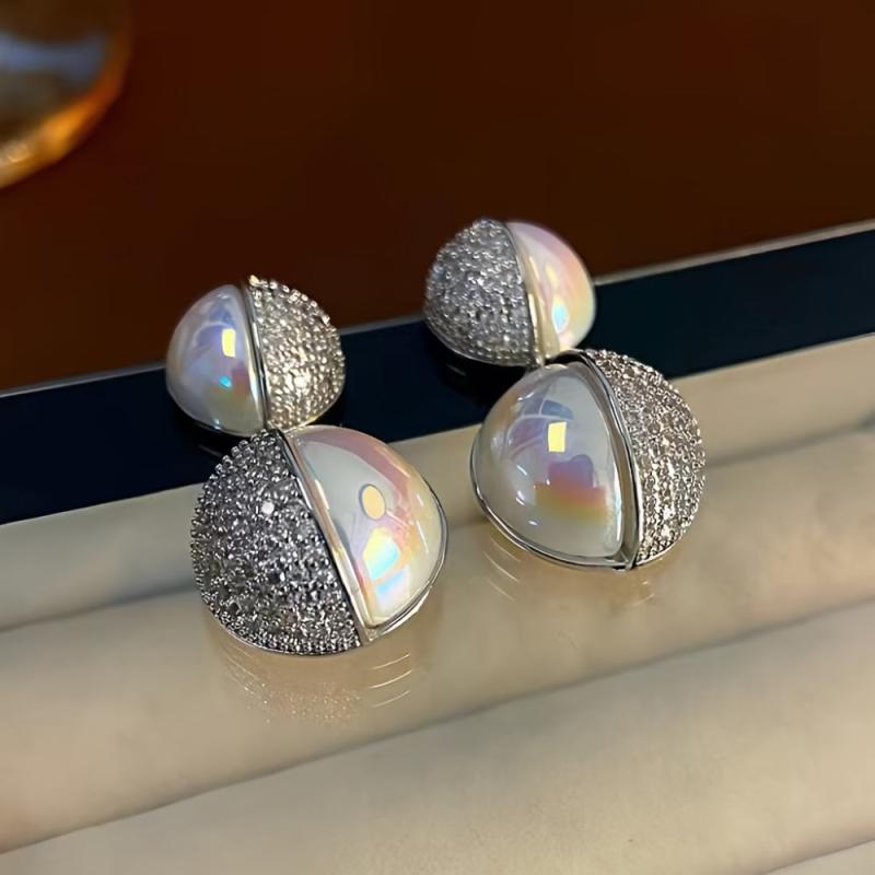 Unique asymmetrical earrings featuring synthetic zirconia, ideal for Christmas, weddings, and everyday wear. Hollow interior adds novelty to the design.