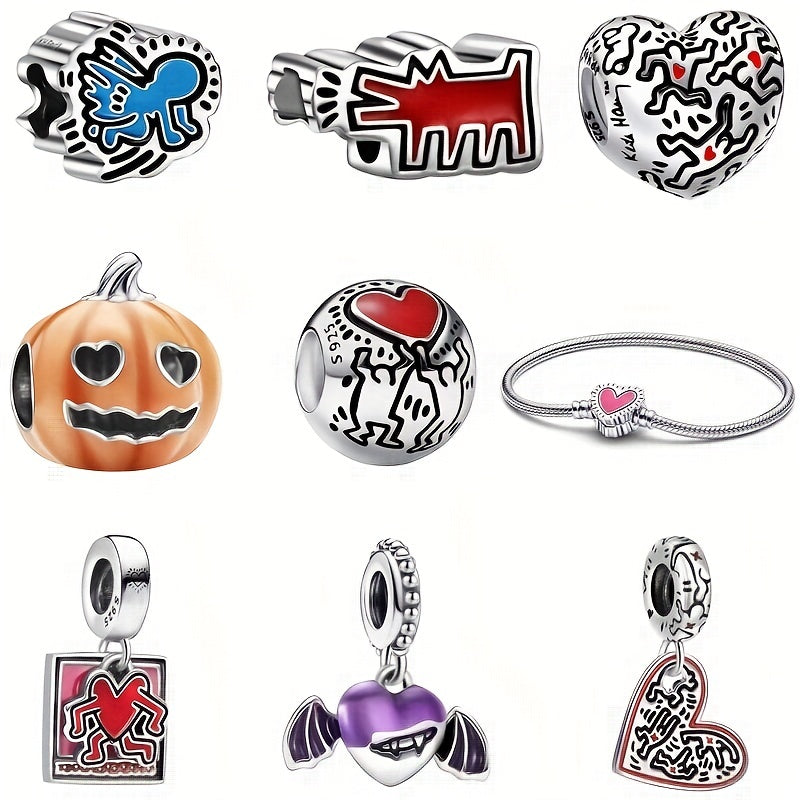 Get into the Halloween spirit with this DIY beaded charm featuring pumpkin, angel, love wave, human, and bat wing designs that glow in the dark.