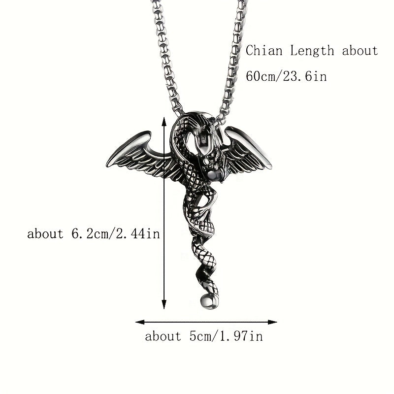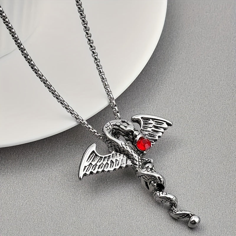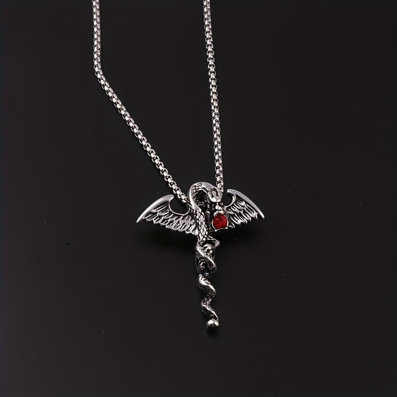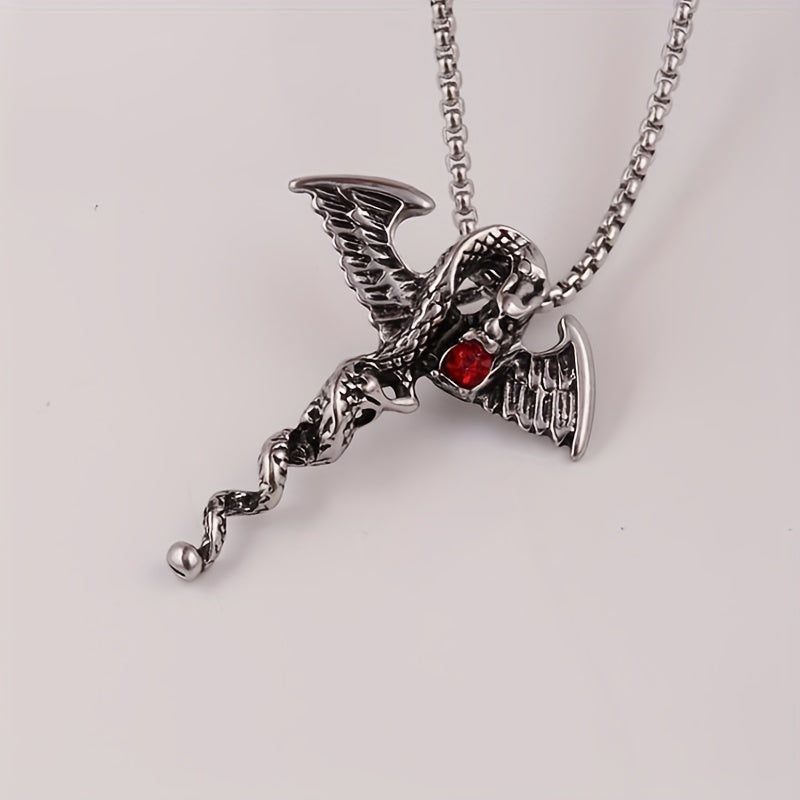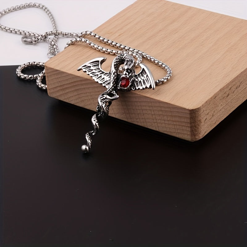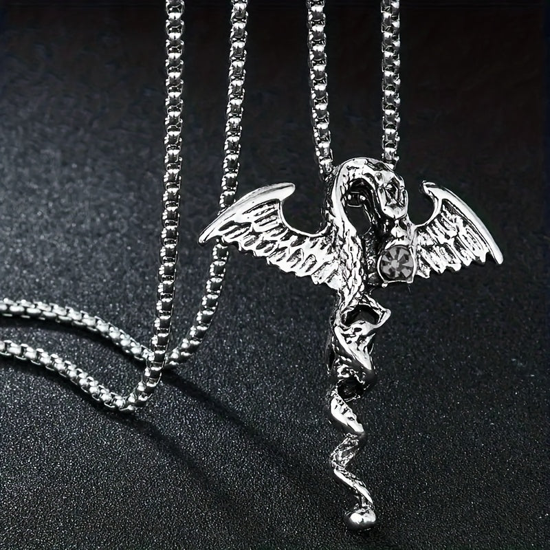 Embrace your inner dragon with this vintage hip hop pendant necklace featuring a flying dragon design embellished with a gemstone. Crafted from stainless steel, this necklace adds a touch of personality to any outfit.