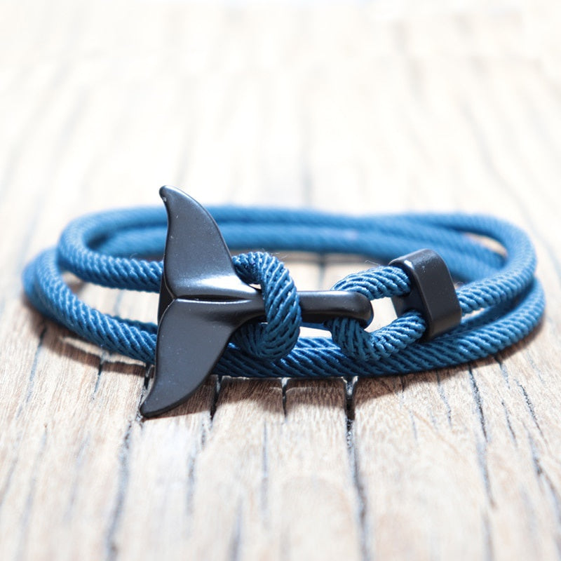 This beautiful bracelet features a hand-braided design with a whale tail charm. The adjustable rope makes it easy to wear and suitable for all wrist sizes.