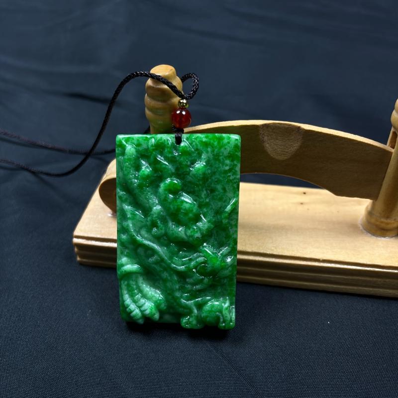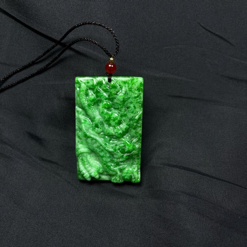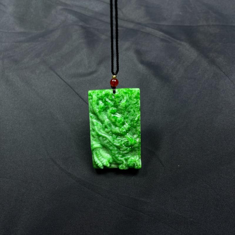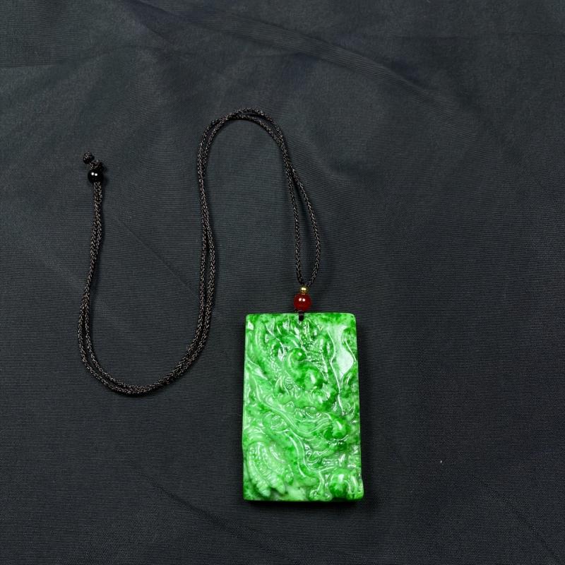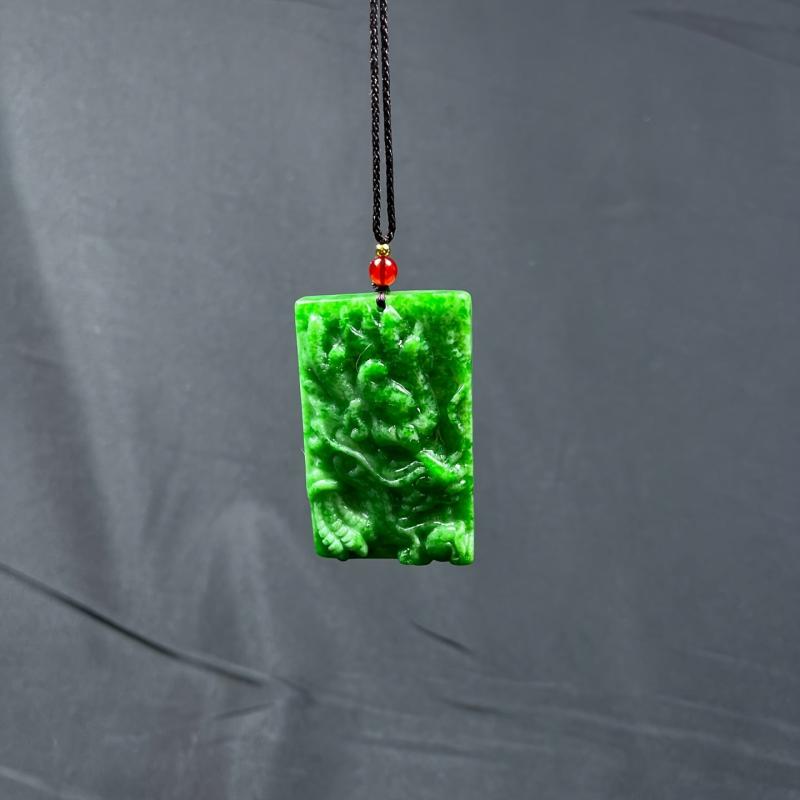 Make a bold statement with this handcrafted natural stone pendant necklace featuring a green dragon design. Stylish and modern accessory for men.