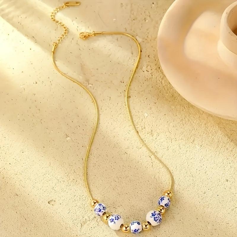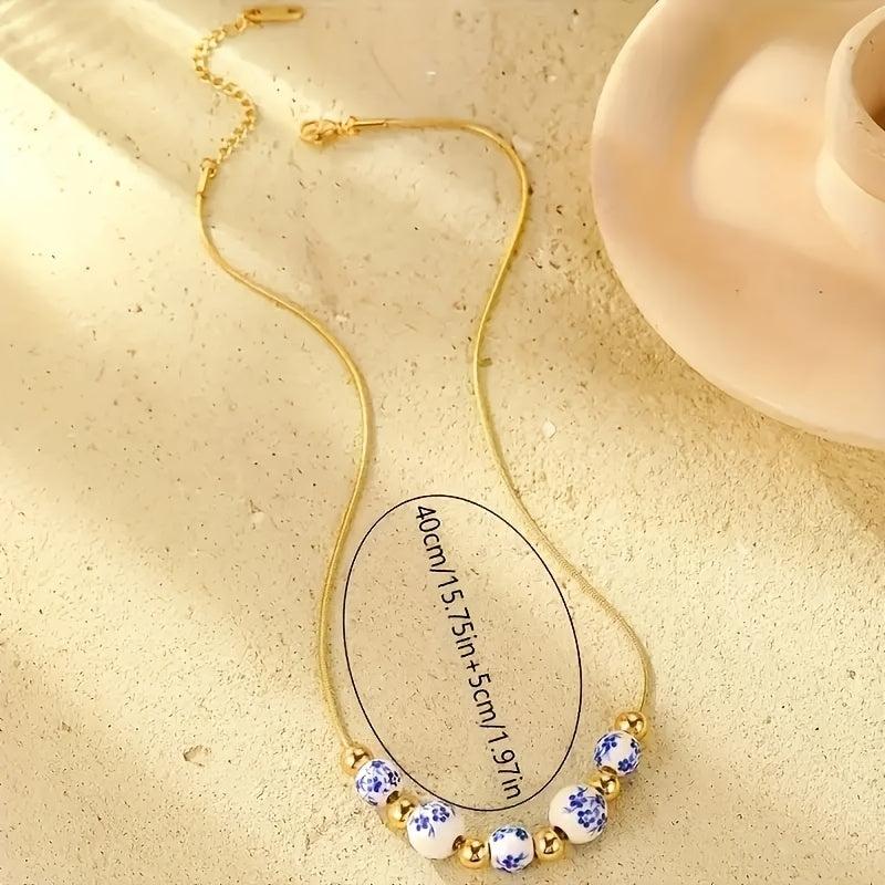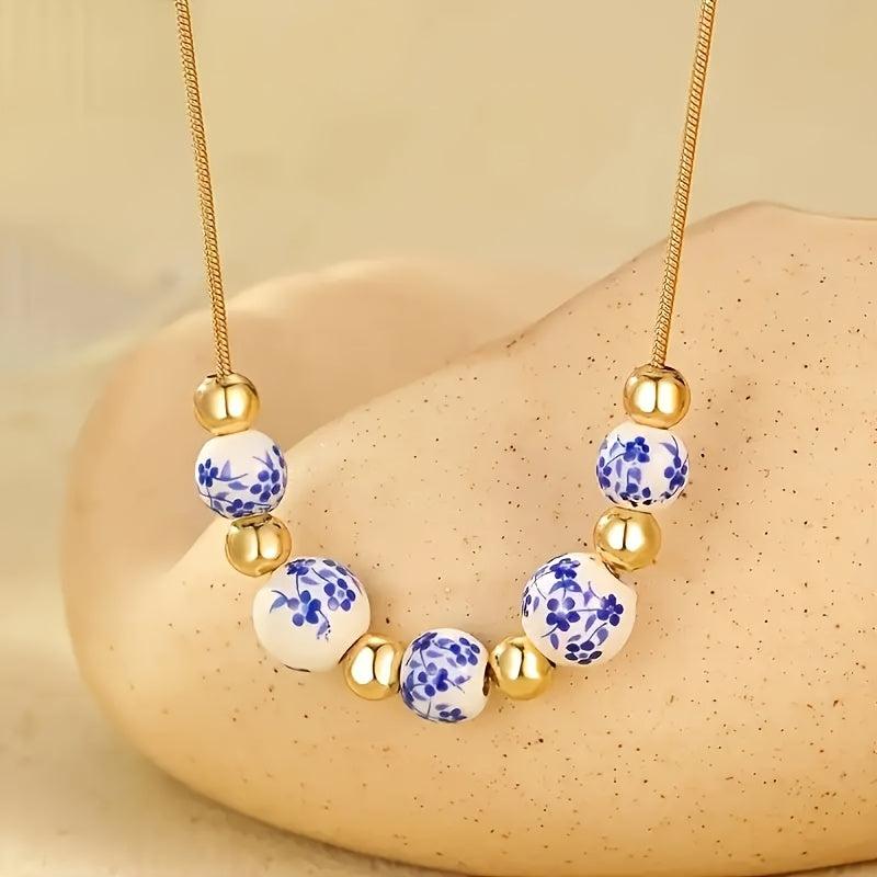 This hand painted porcelain petal bead necklace is a fashionable accessory for women. Perfect for daily wear or gift giving occasions. The unique irregular design adds a touch of elegance to any outfit.