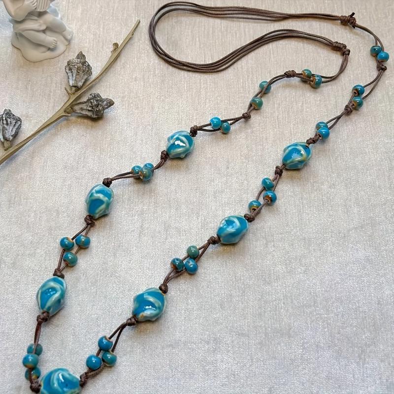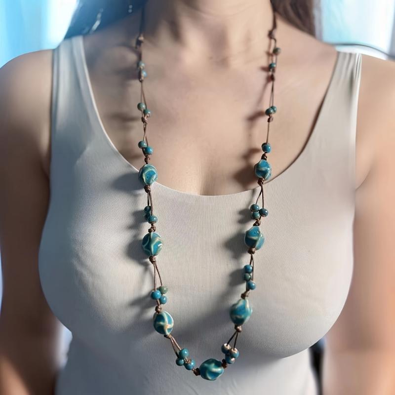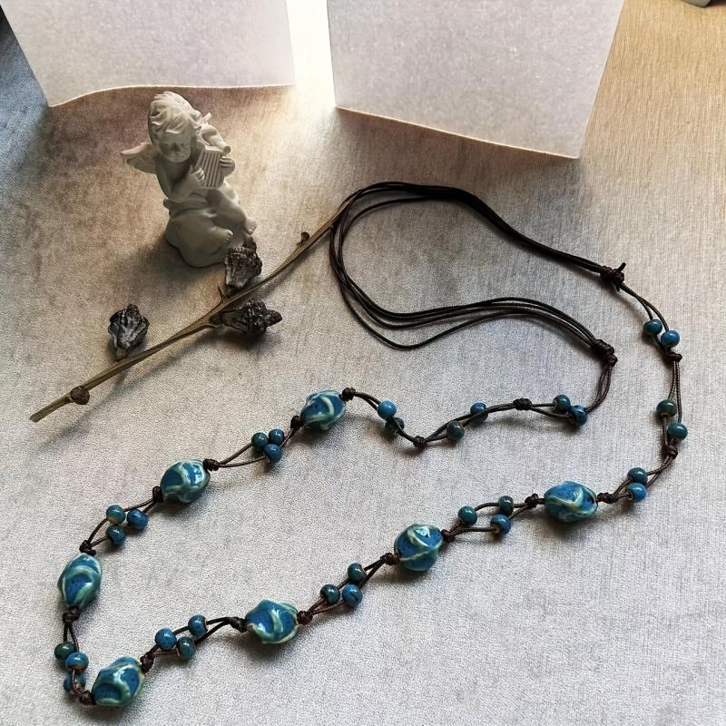 Handcrafted Ceramic Bead Necklace Long Style Sweater Chain