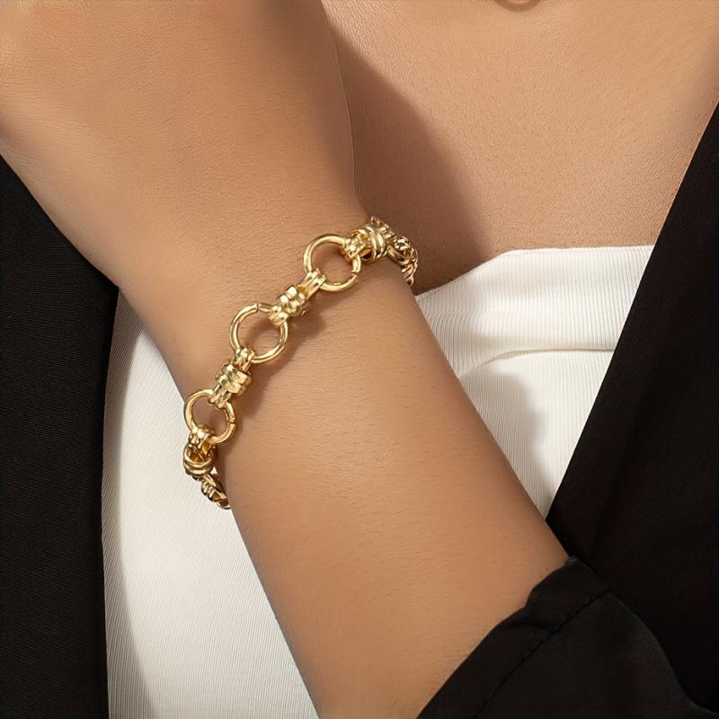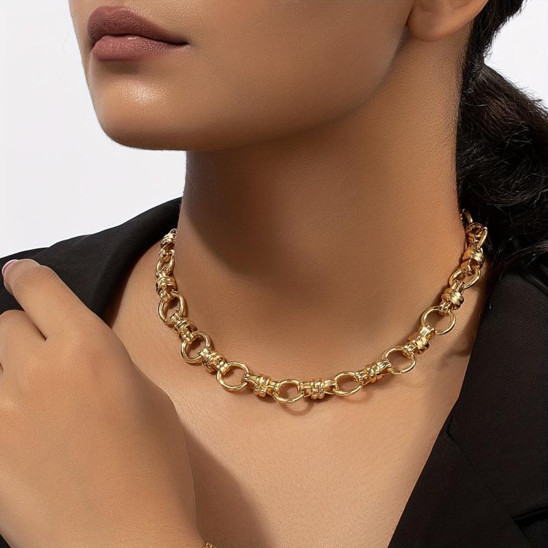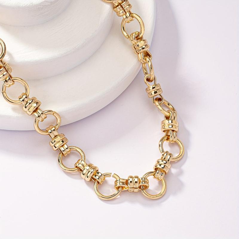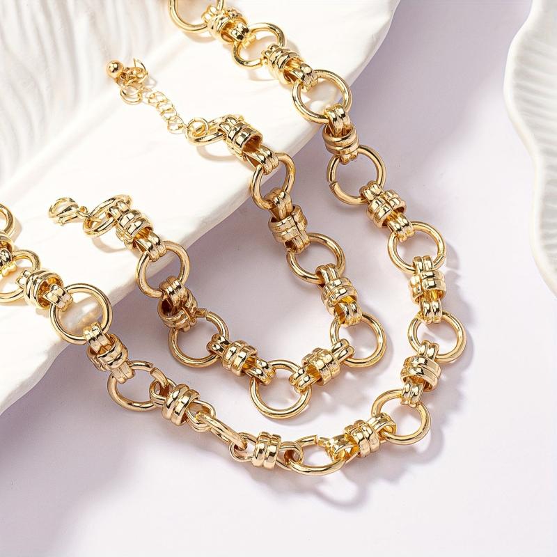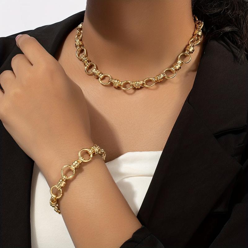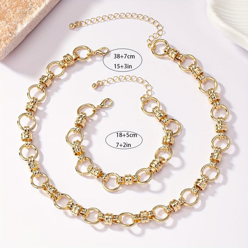 This set features a minimalist punk style handcrafted metal chain necklace and bracelet. Perfect for adding a touch of edgy elegance to your outfit.