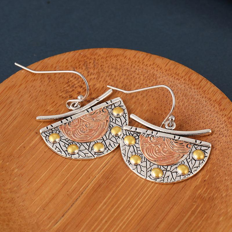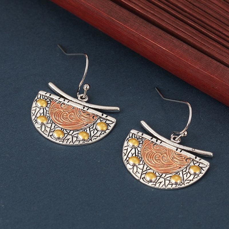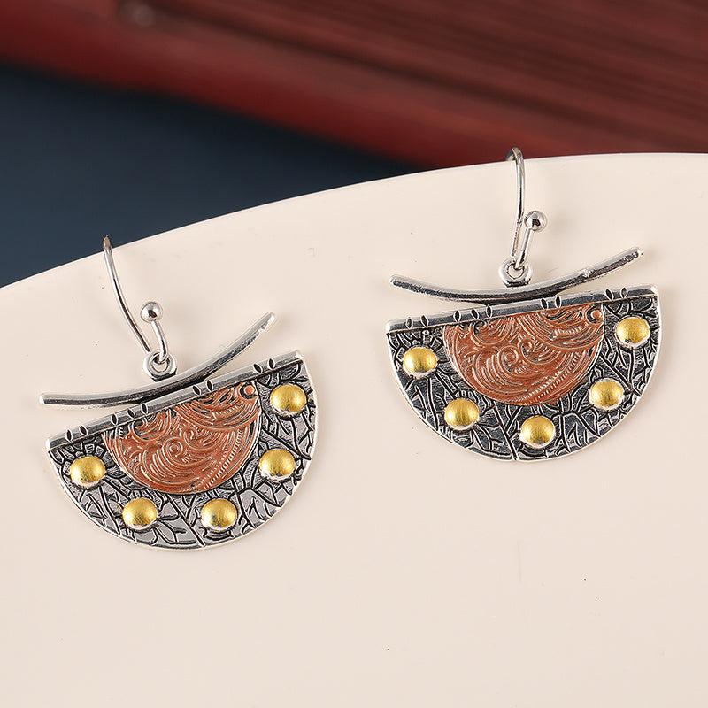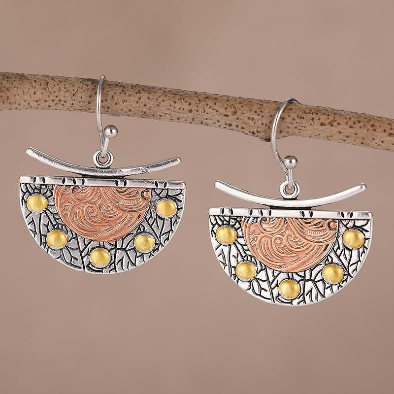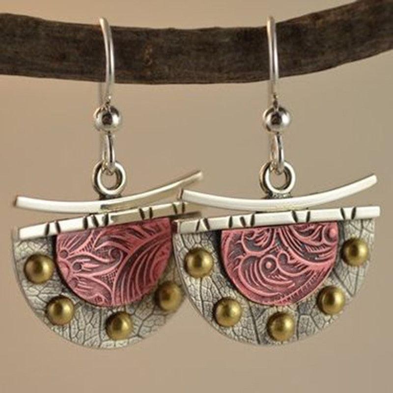 These unique handcrafted earrings feature a retro geometric design with a floral pattern, perfect for both men and women.