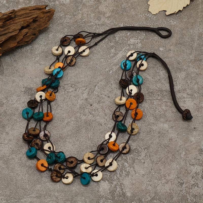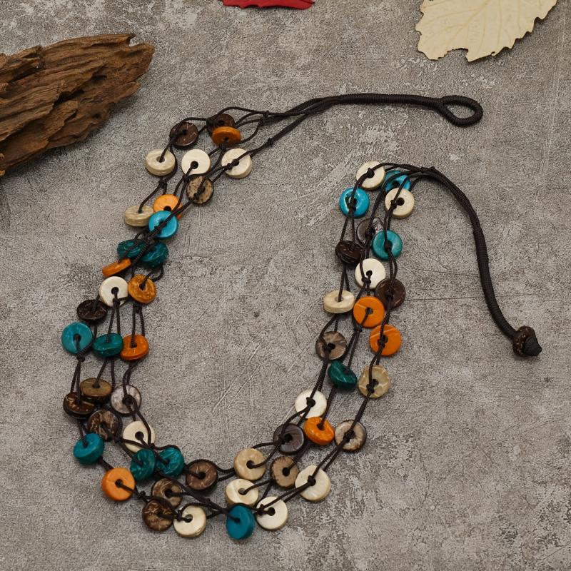 Elevate your look with this handcrafted wooden button bead necklace. Perfect for bohemian vintage style lovers. Suitable for daily wear or gifting occasions. Versatile accessory for all seasons.