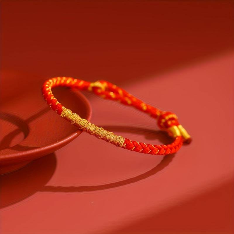 This handwoven double red and golden braided bracelet is a timeless piece of vintage unisex jewelry suitable for everyday wear or parties. A thoughtful gift for loved ones, this bracelet adds a touch of elegance.