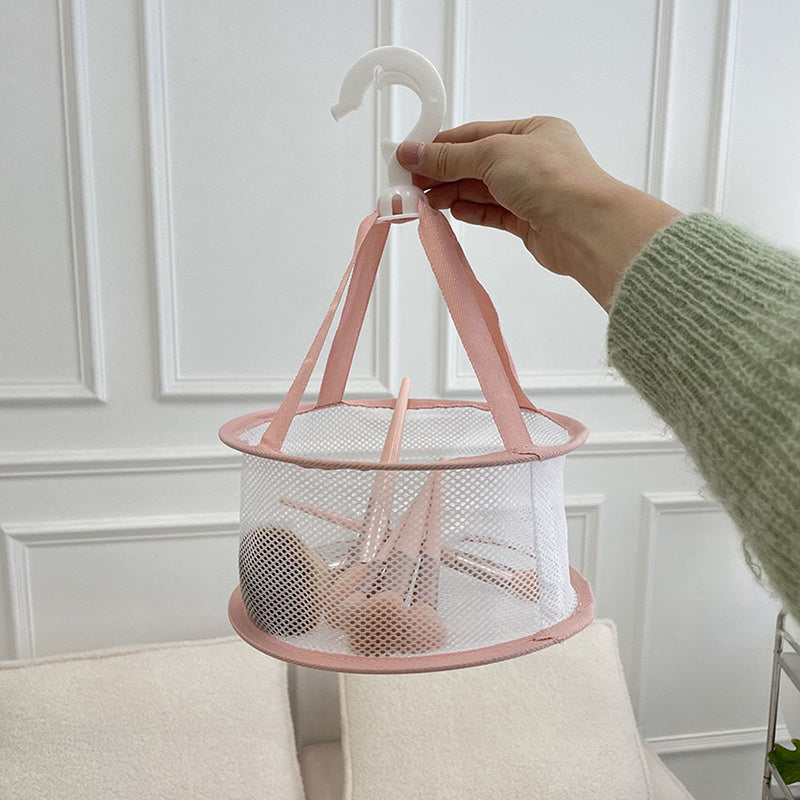 This hanging basket beauty egg drying net bag is perfect for air-drying your beauty sponges and makeup brushes. It can also be used as a storage organizer for your beauty tools.