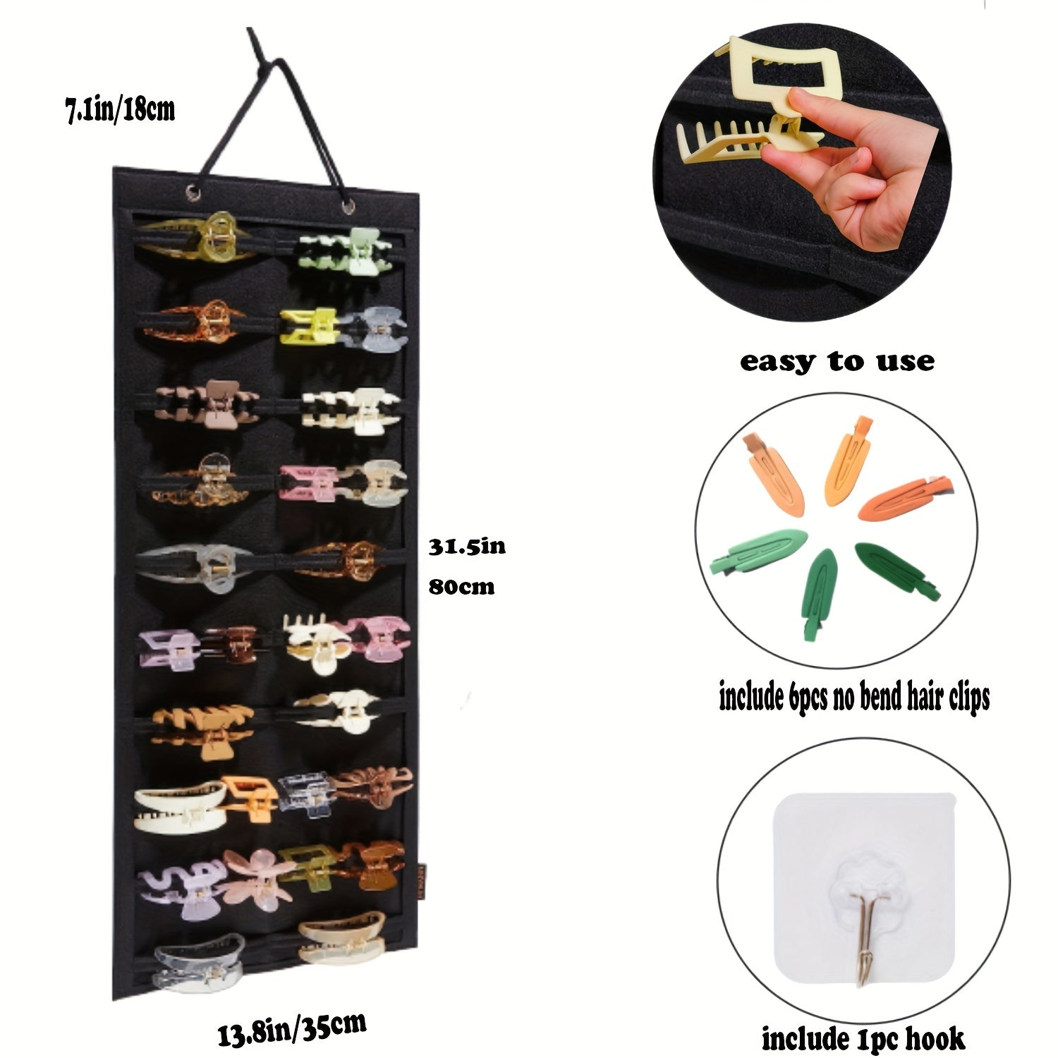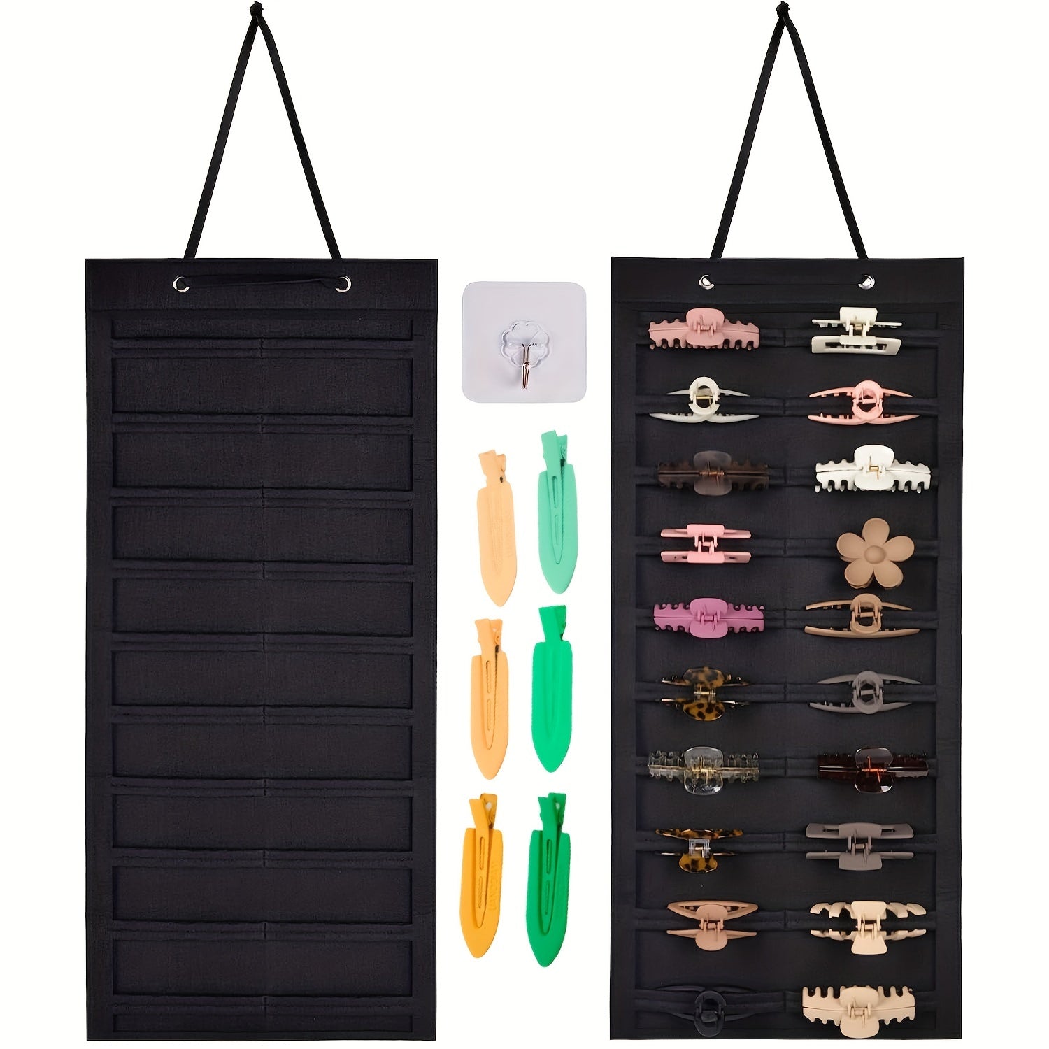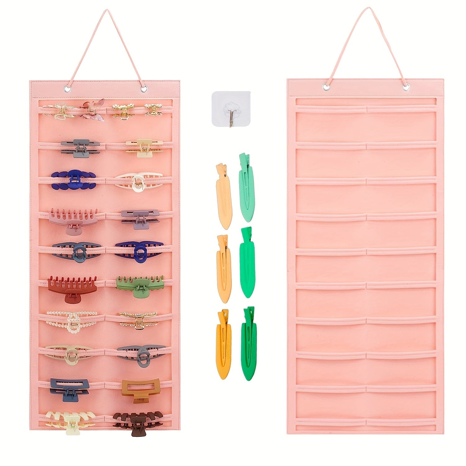 Keep your hair accessories organized with this hanging hair clip organizer that features 20 slots to store your favorite hair clips. This organizer helps save space and keeps your clips easily accessible.