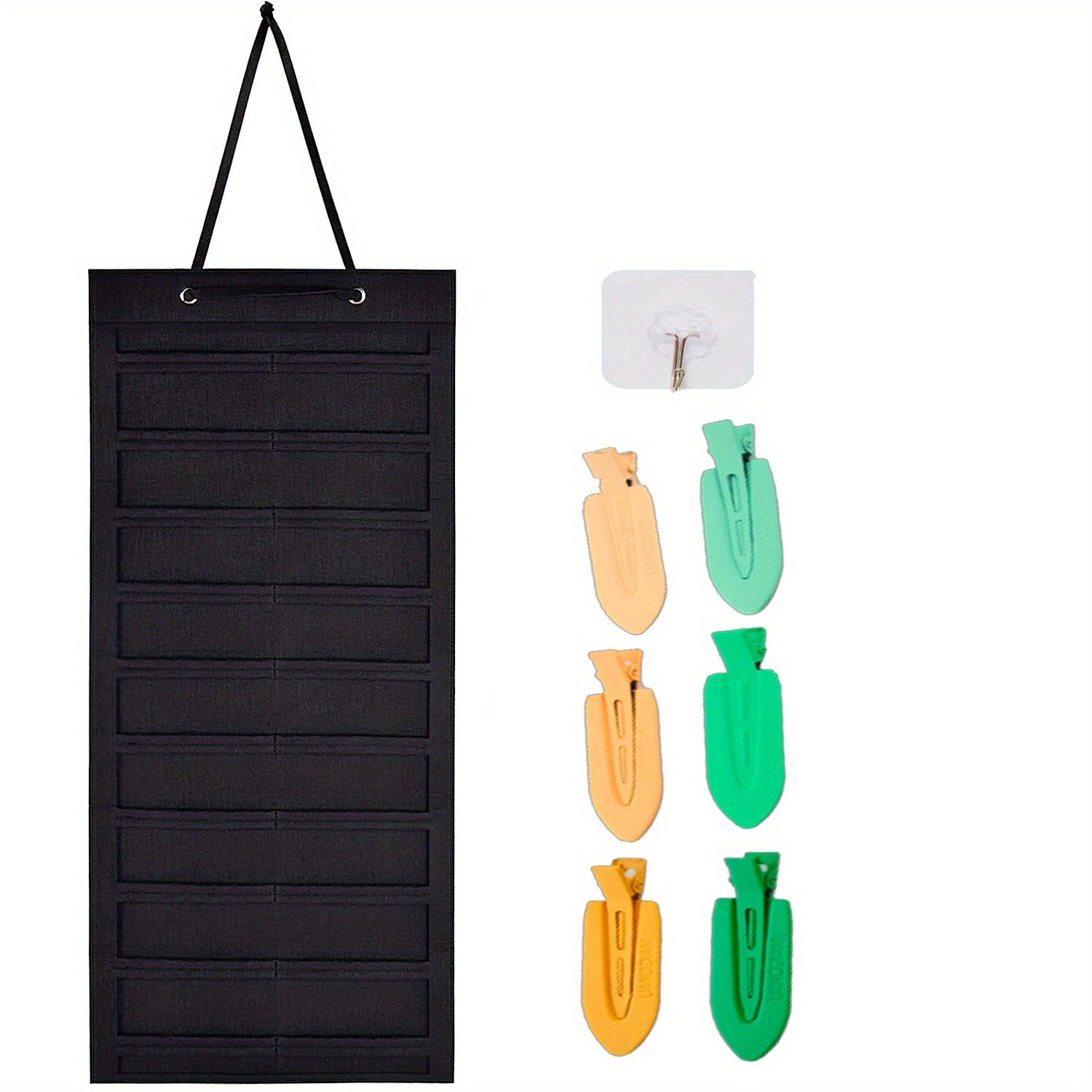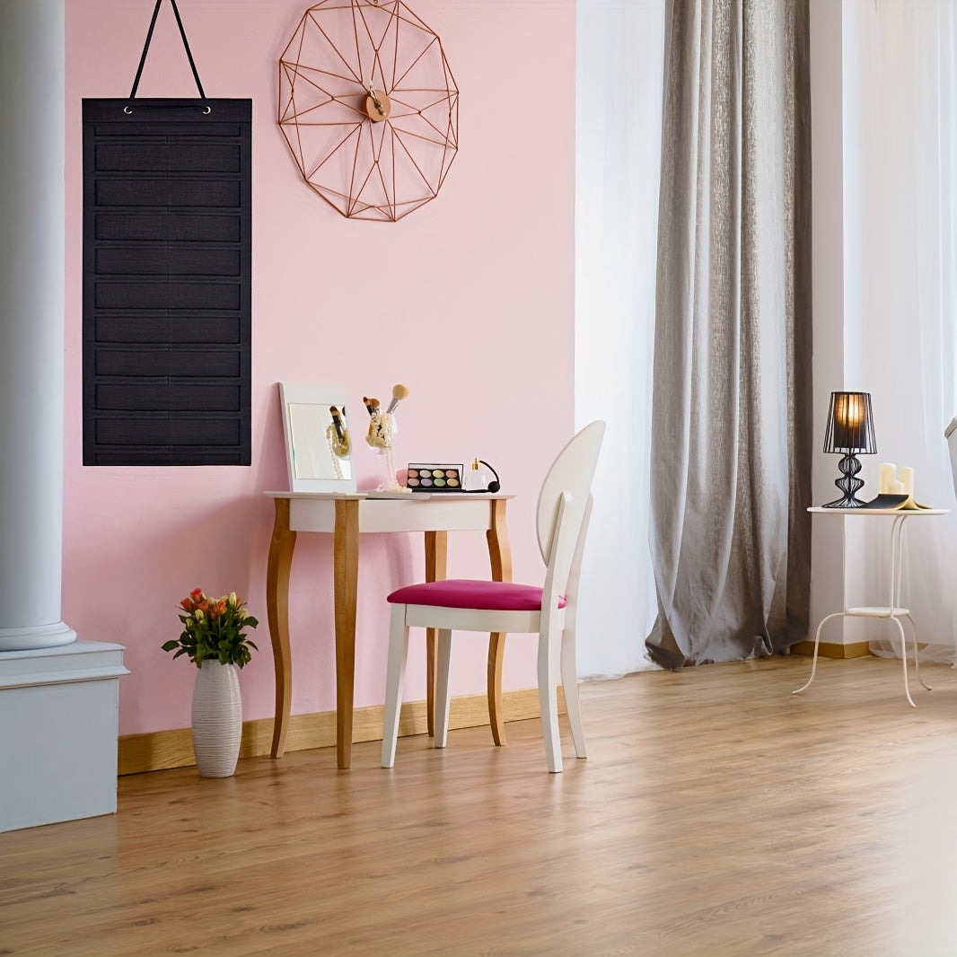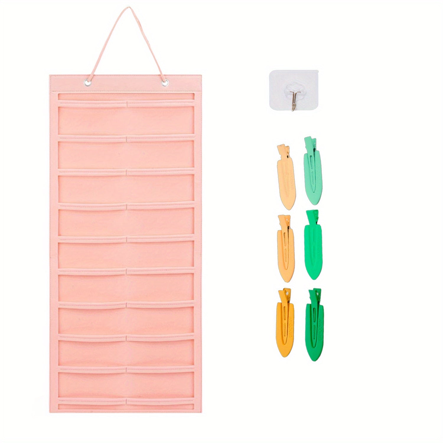 Keep your hair accessories organized with this hanging hair clip organizer that features 20 slots to store your favorite hair clips. This organizer helps save space and keeps your clips easily accessible.