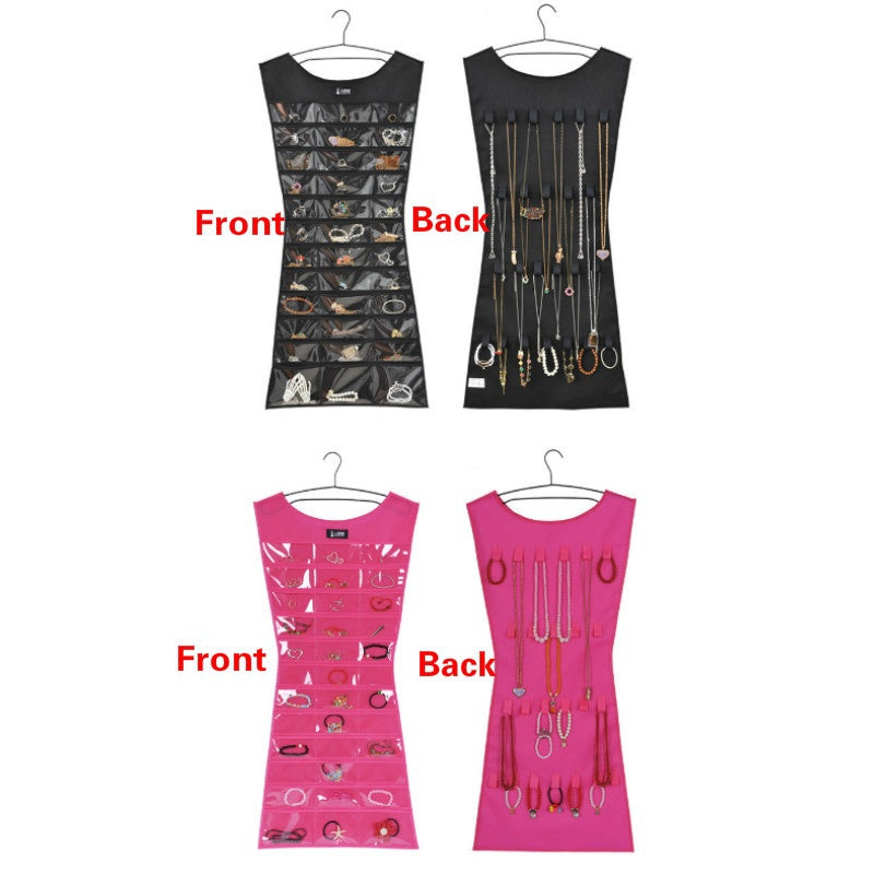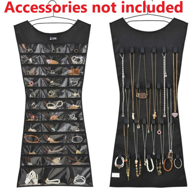 Keep your jewelry neat and organized with this hanging storage bag. Store necklaces, bracelets, earrings, and rings in this convenient jewelry holder.