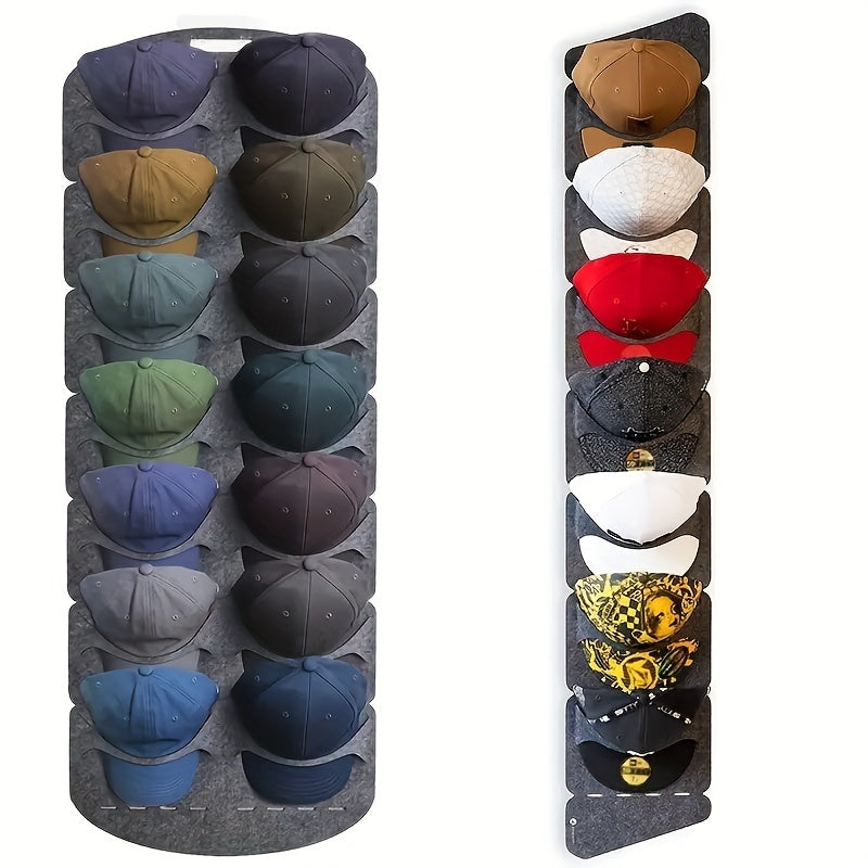 Keep your baseball caps organized with this handy hat rack. The foldable design makes it easy to store when not in use, and the large hanging hat storage bag offers ample space for all your caps.