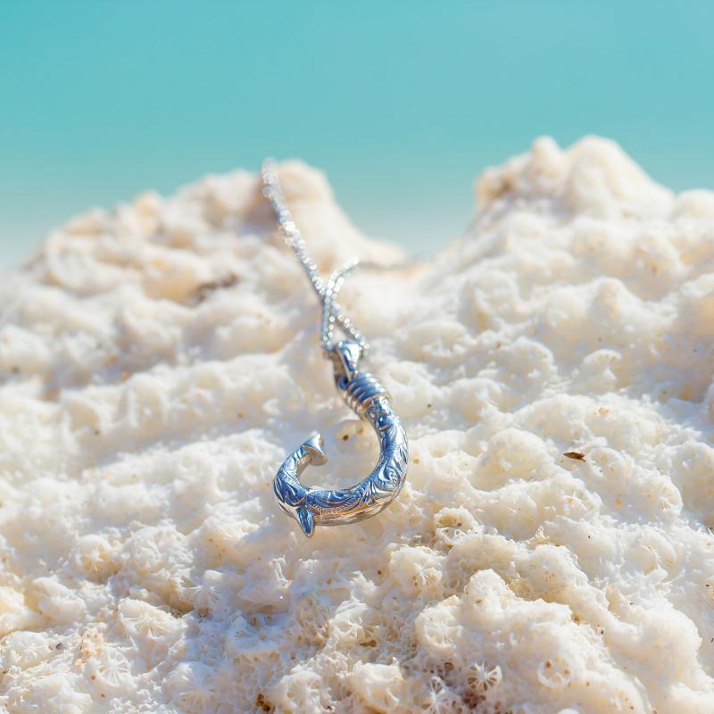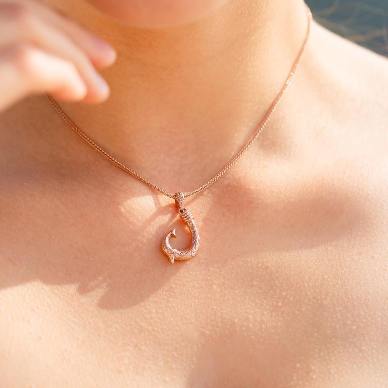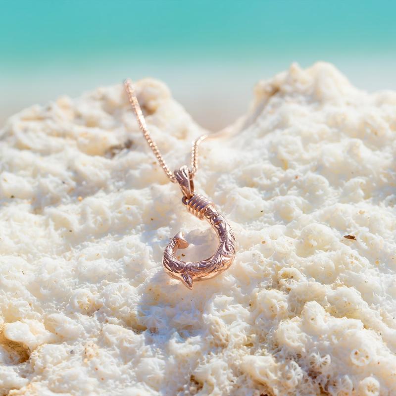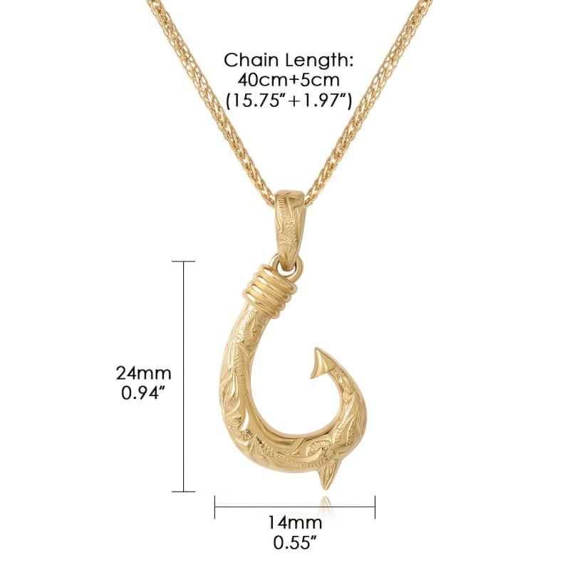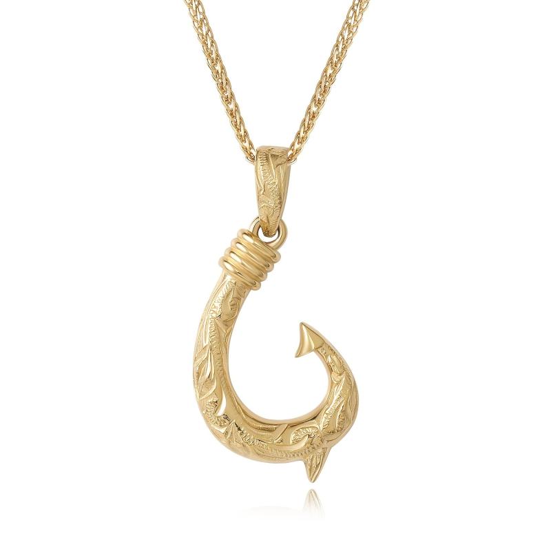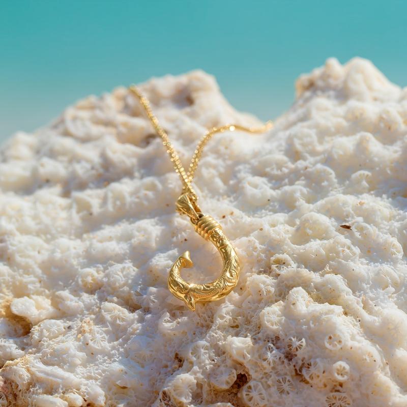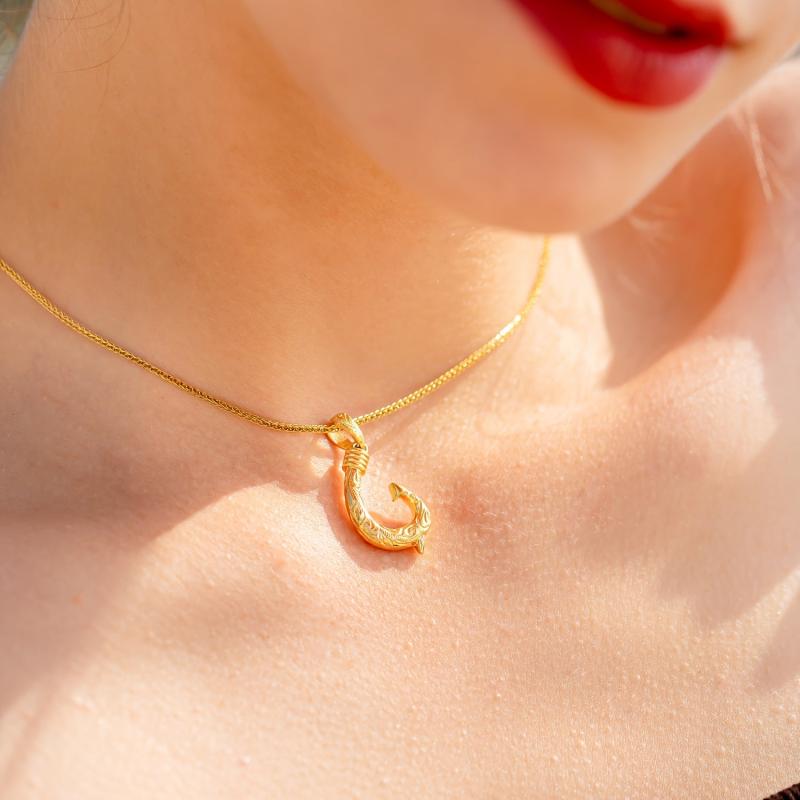 Elegant Hawaii fish hook pendant carved from premium materials and plated in 14K gold for a luxurious look.