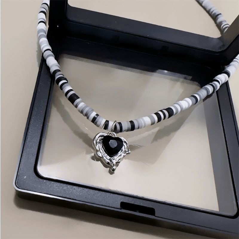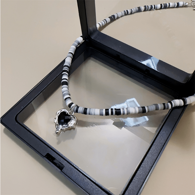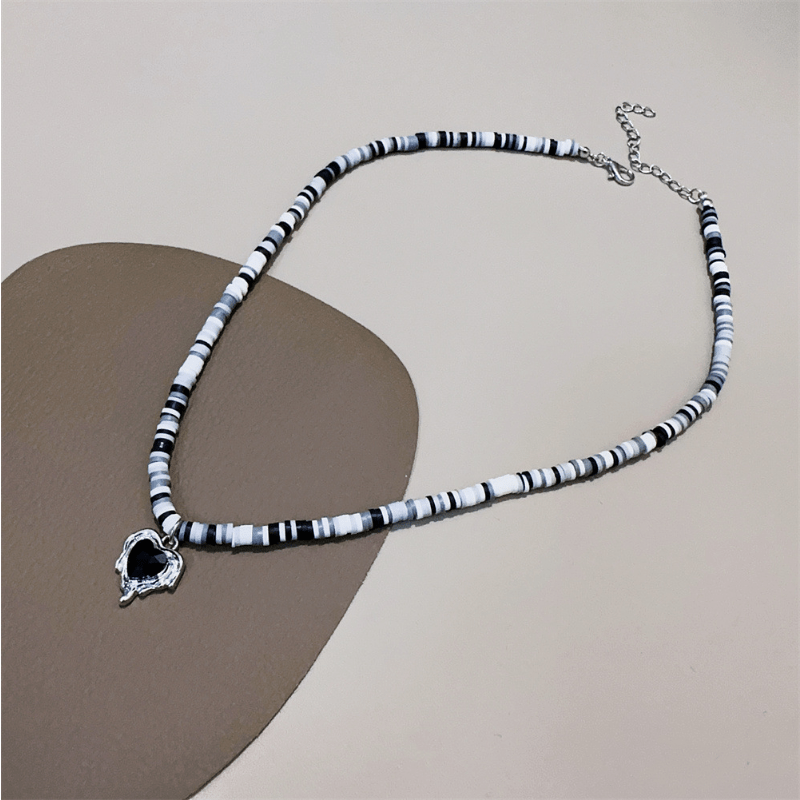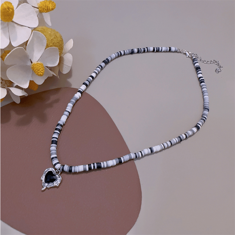 This adorable necklace features a heart charm and soft pottery beaded chain, perfect for birthday outfits and everyday wear for girls and women.