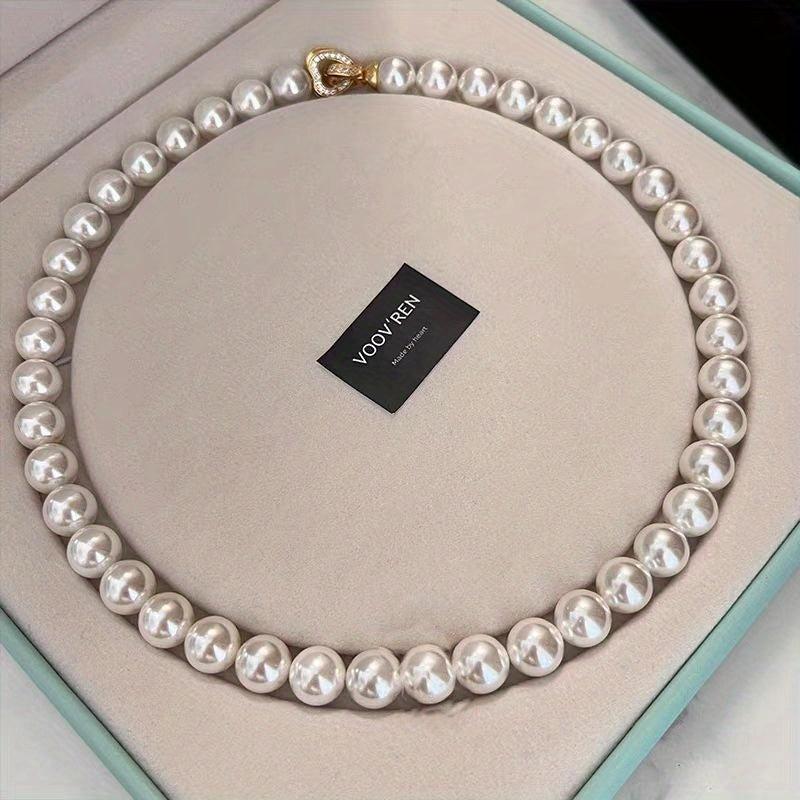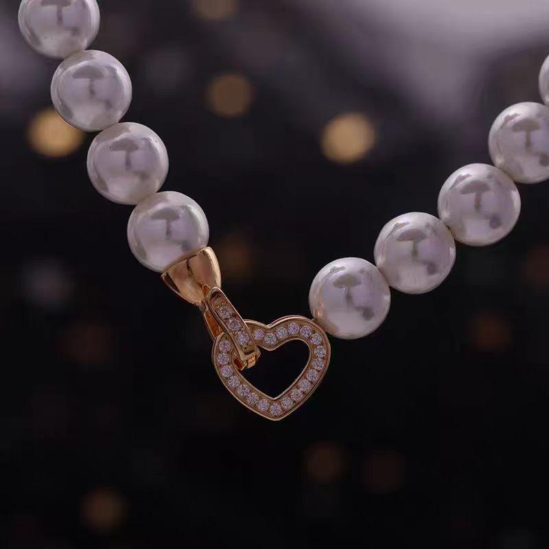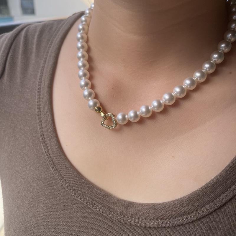 This Shell Pearl Necklace with a heart clasp is a versatile accessory perfect for everyday casual wear or gifting. It's ideal for Valentine's Day and brings a touch of elegance.