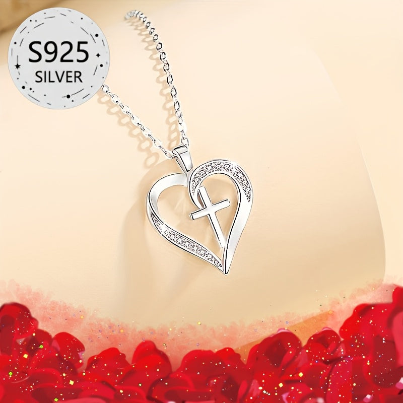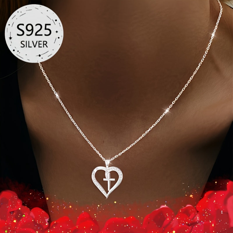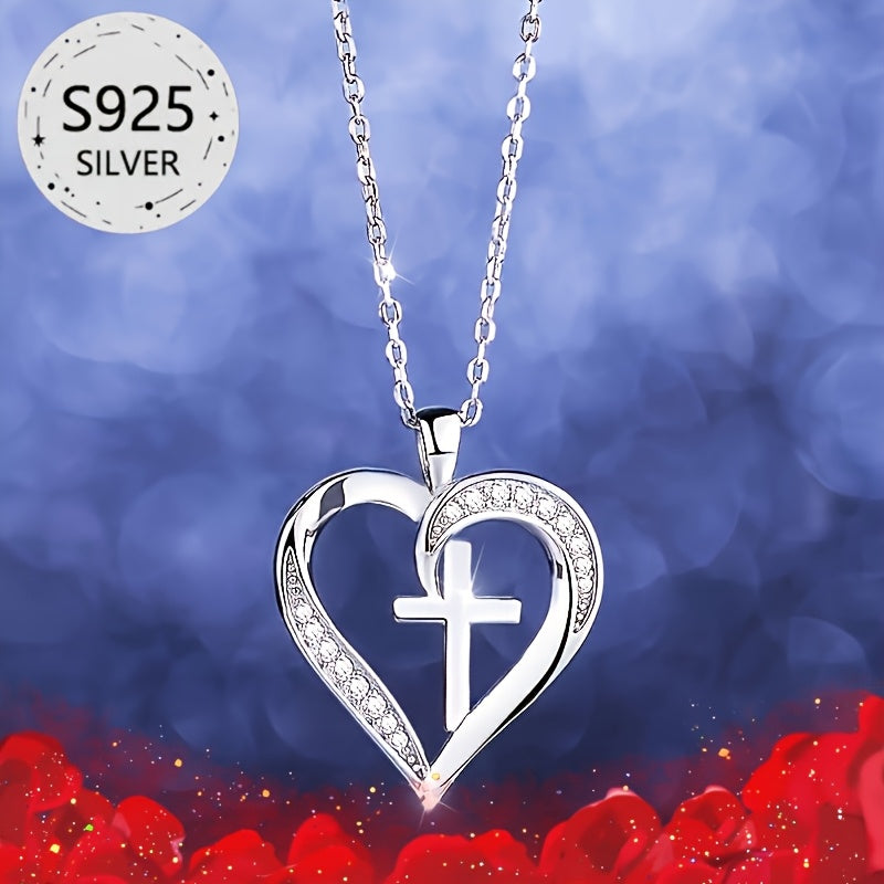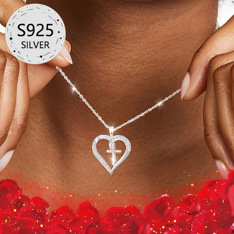 This stunning necklace features a heart-shaped cross adorned with synthetic zirconia stones, symbolizing infinite love. Crafted in high-quality S925 silver, it makes a perfect gift for Mother's Day, Thanksgiving, Christmas, or any special occasion.