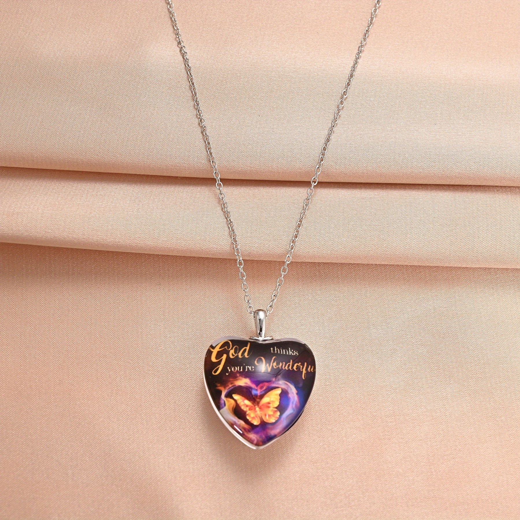 This beautiful necklace features a heart-shaped crystal pendant with a rose butterfly pattern, perfect for adding a touch of elegance to any outfit. Great for Christmas, banquets, or everyday wear.