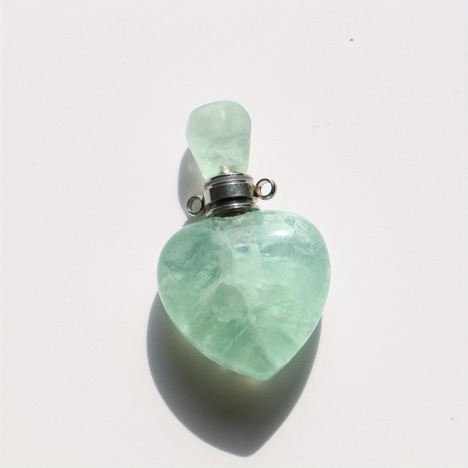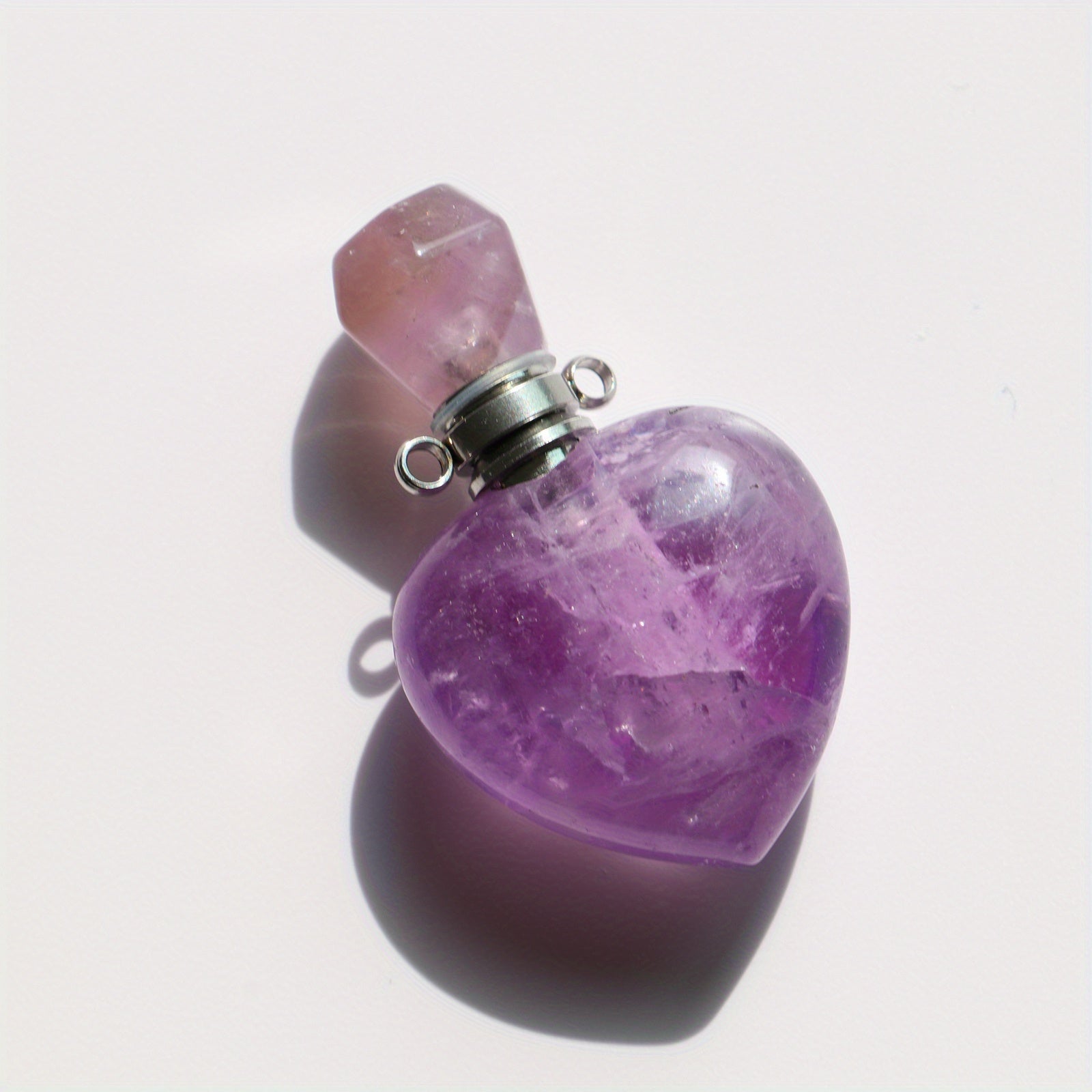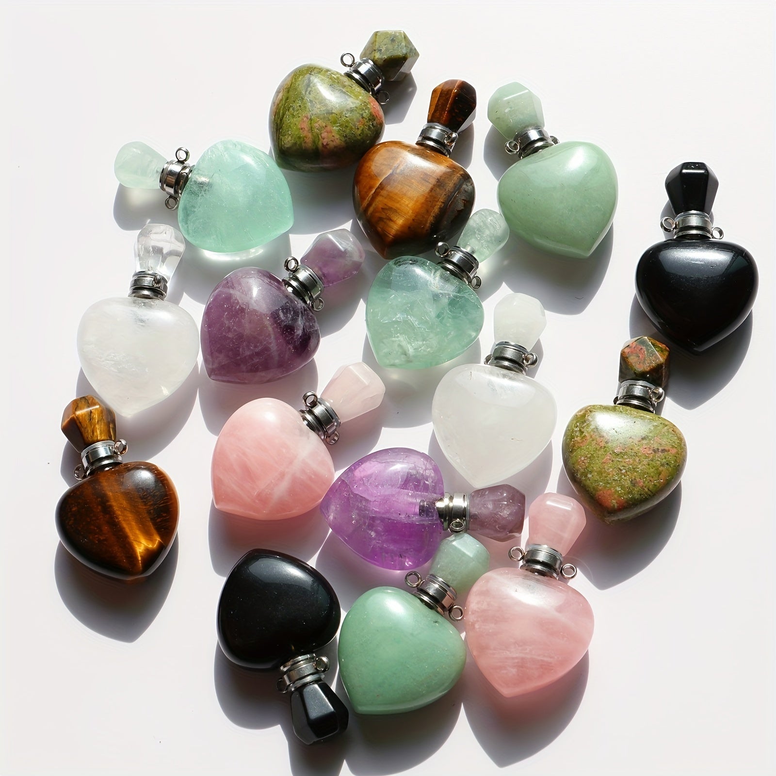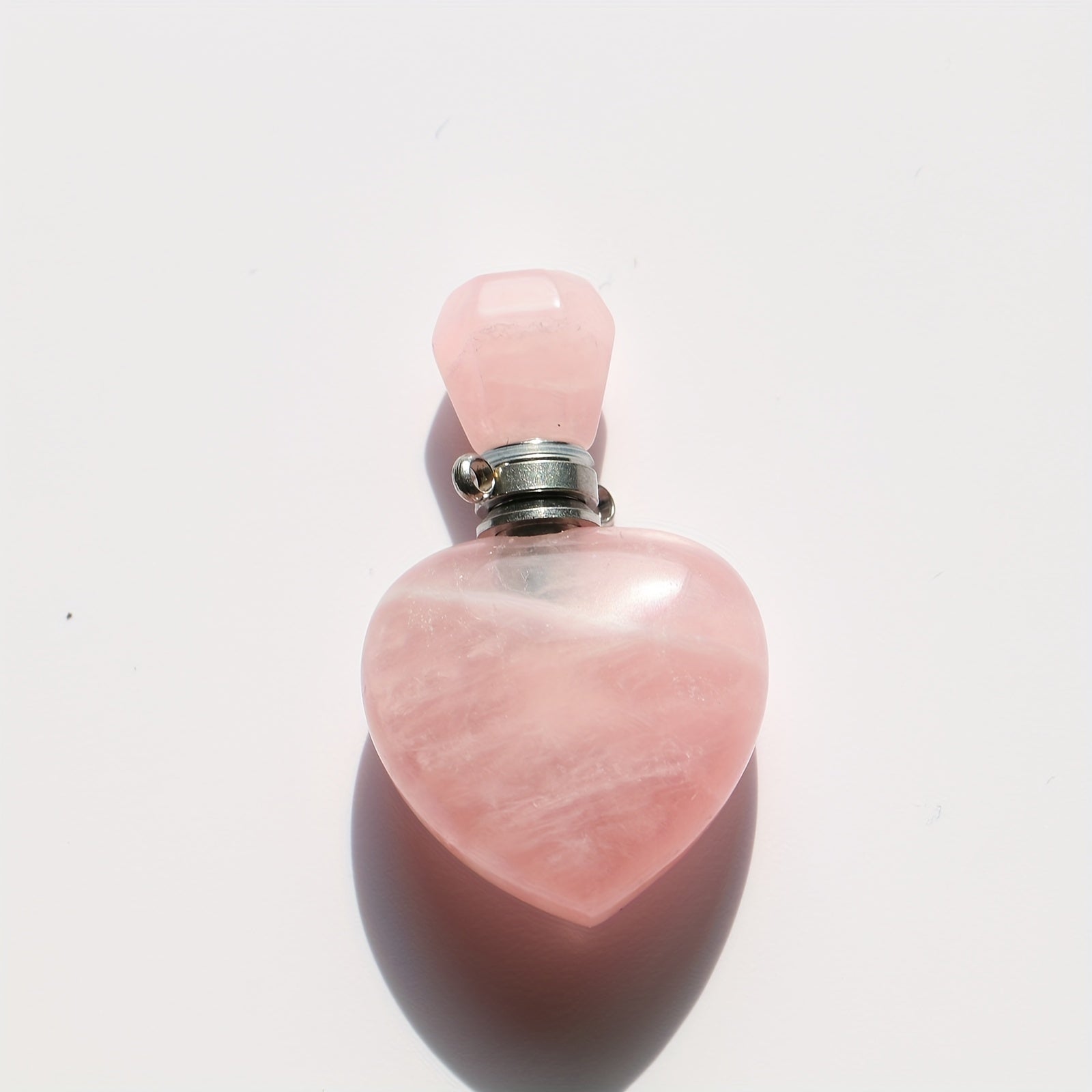 This beautiful heart-shaped crystal perfume bottle necklace features a Pink Tiger Eye stone. Add your favorite essential oil to carry its fragrance with you wherever you go.