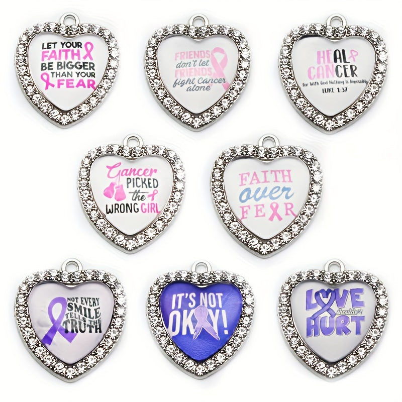 Show your support with this heart crystal rhinestone pendant featuring a cancer ribbon design. Perfect for DIY jewelry projects or as a gift for an anti-cancer warrior.