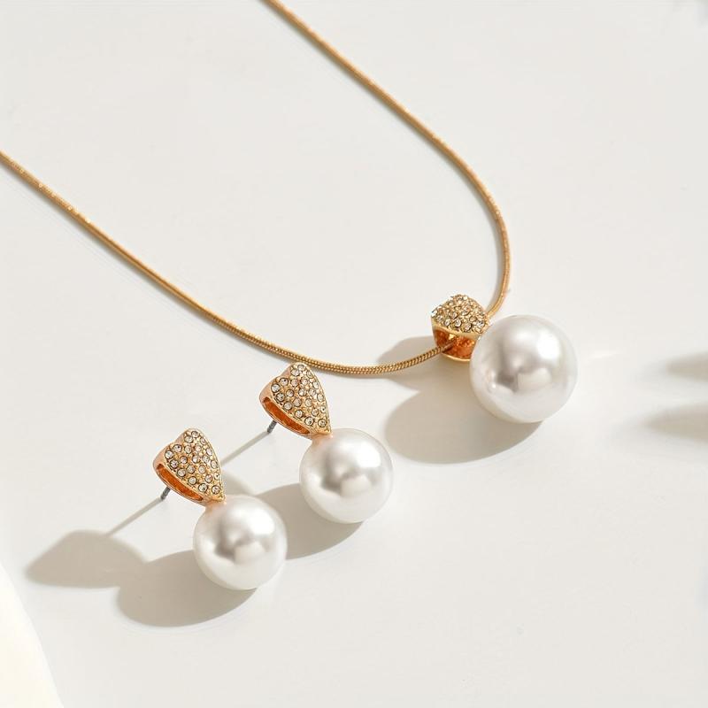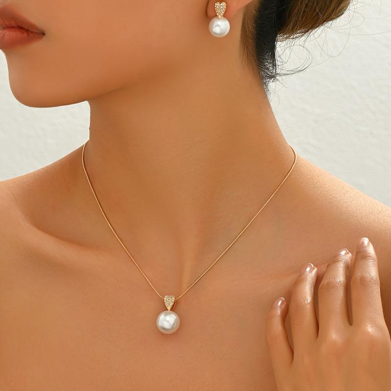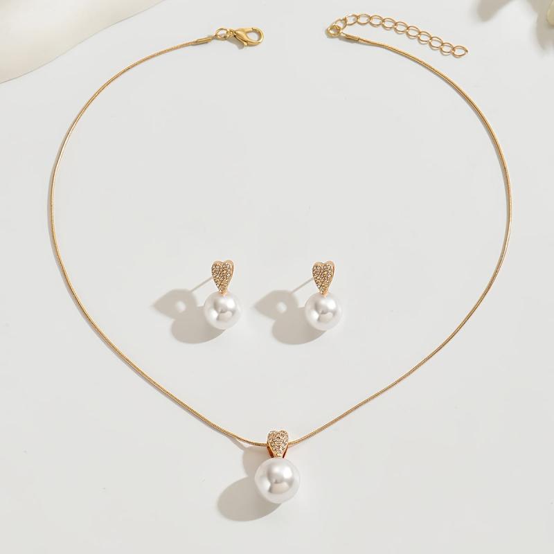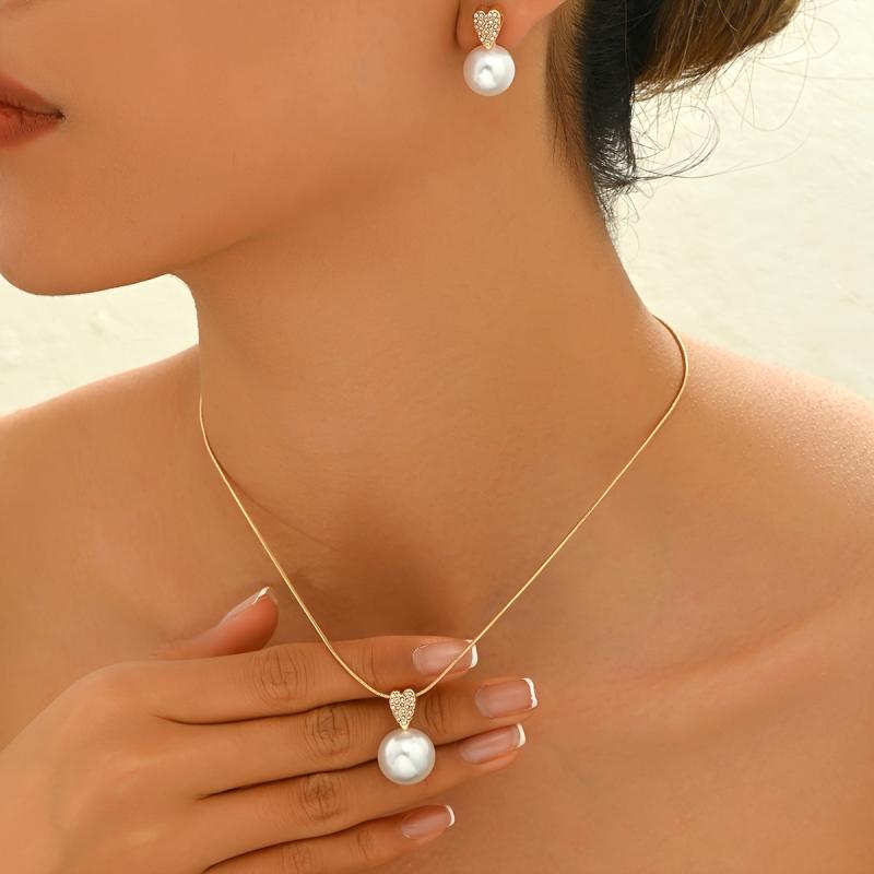 Elevate your style with this minimalist two piece jewelry set. Featuring delicate heart shaped artificial crystal inlays and a sleek snake chain necklace.