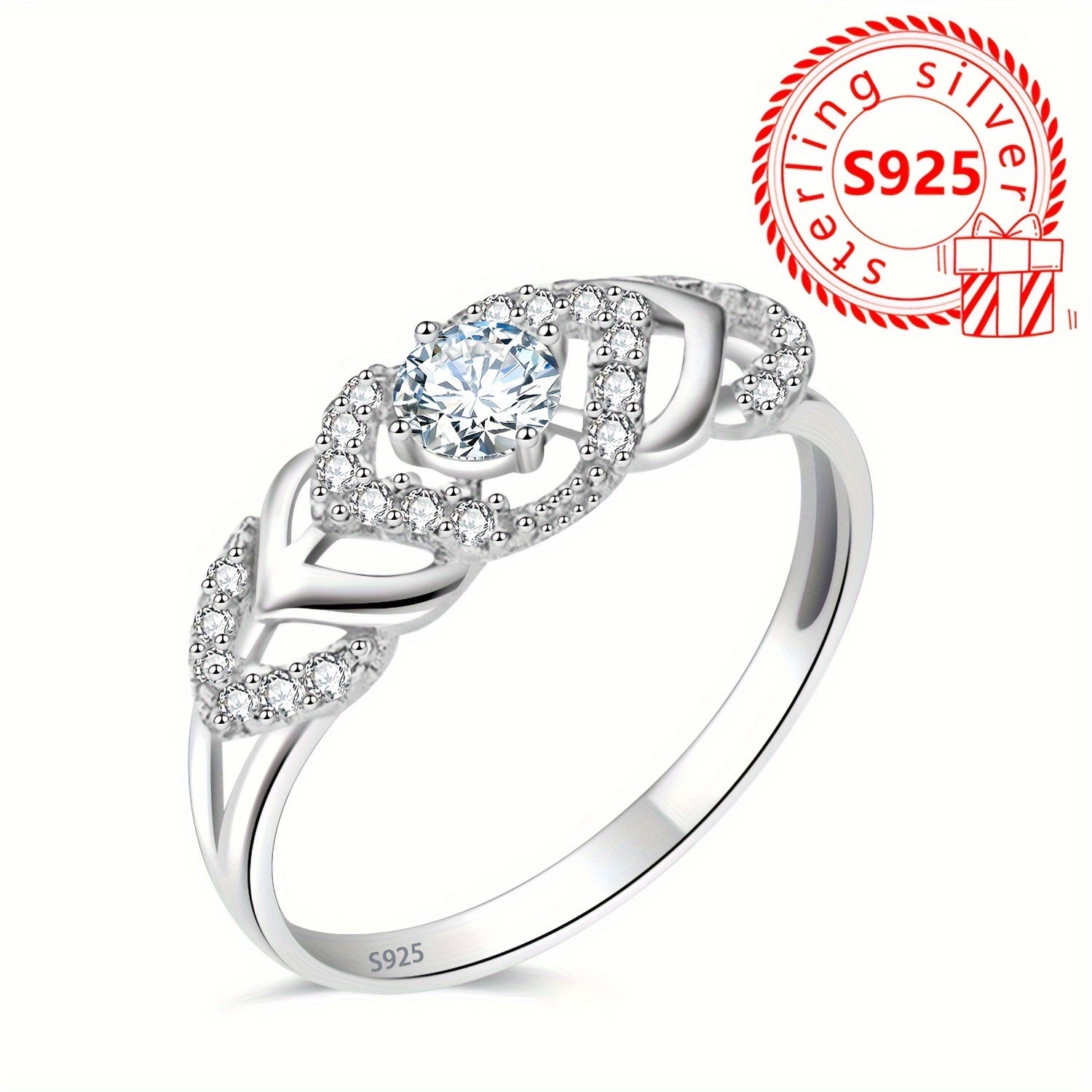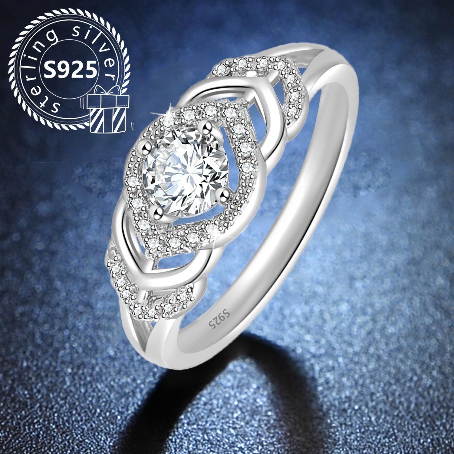 This elegant ring features a heart cutout design with synthetic zirconia inlays, ideal for parties and events.