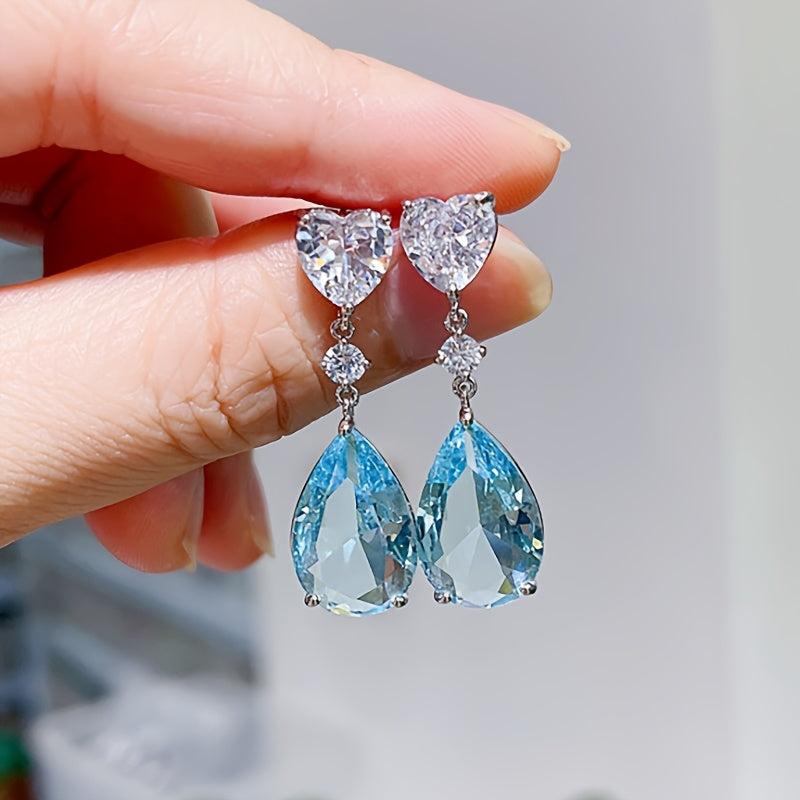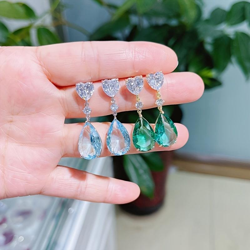 Add a touch of elegance to your look with these heart-shaped cubic zirconia drop earrings. Perfect for parties or as a gift.