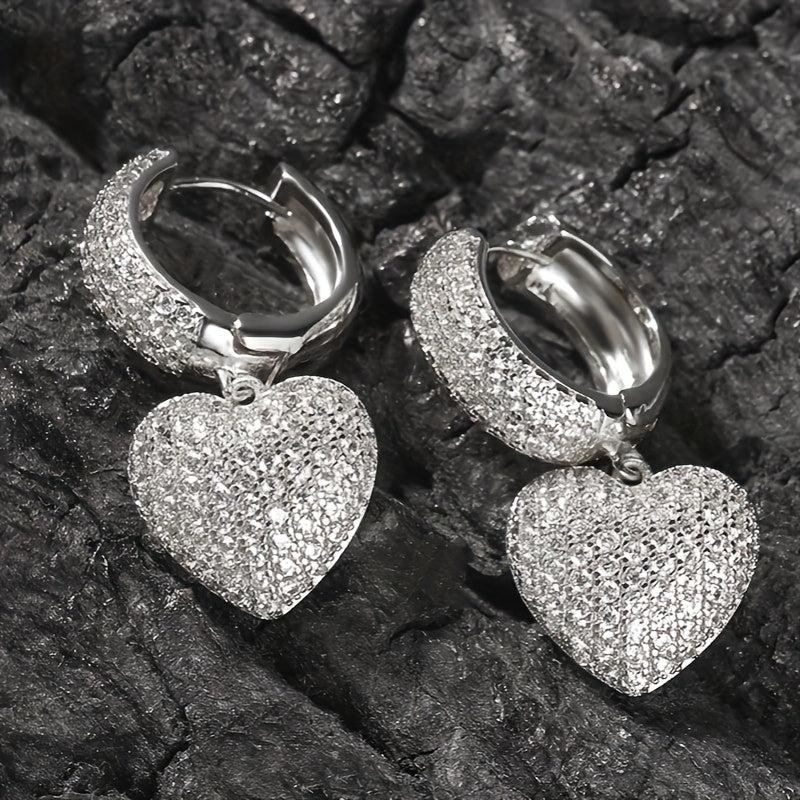 Stunning heart-shaped cubic zirconia hoop earrings made of nickel copper. Perfect for weddings, engagements, or as a gift for April birthdays.