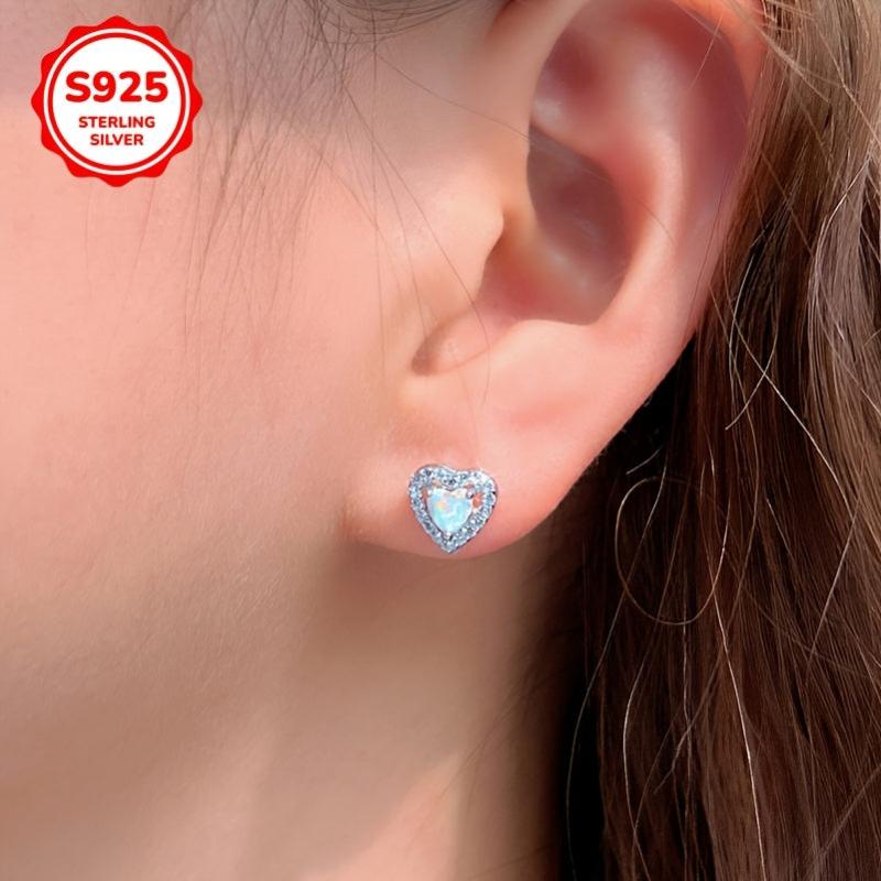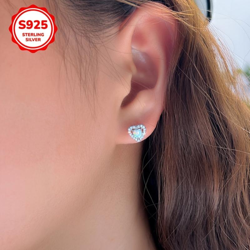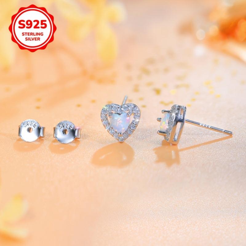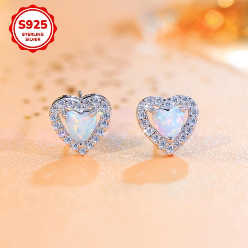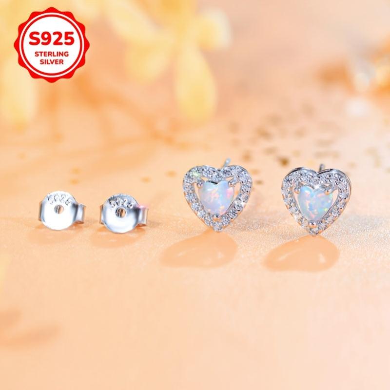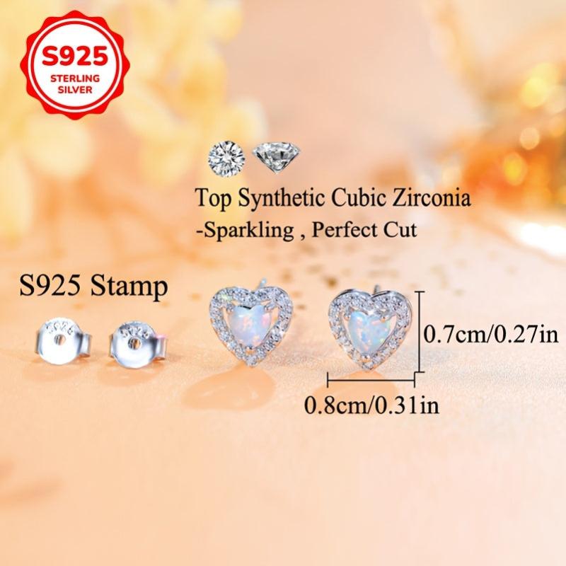These heart-shaped stud earrings feature cubic zirconia inlays set in 925 sterling silver plating. They are perfect for weddings, engagements, and Valentine's Day.
