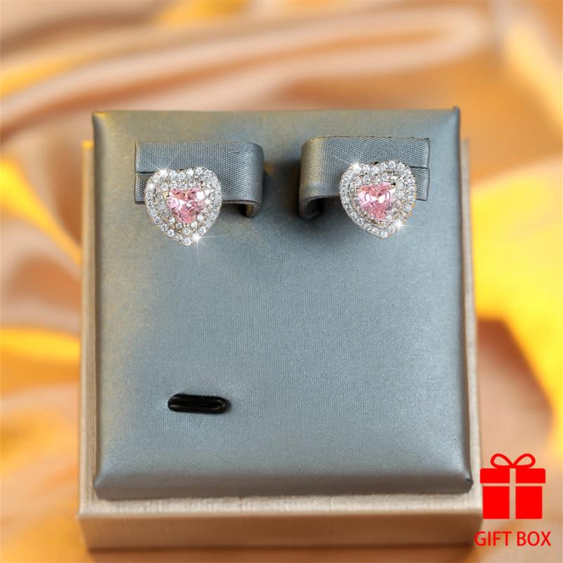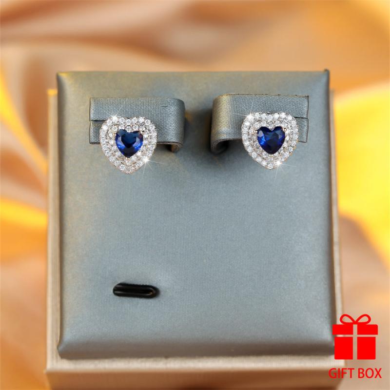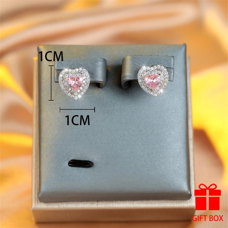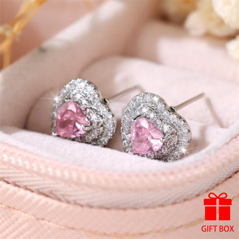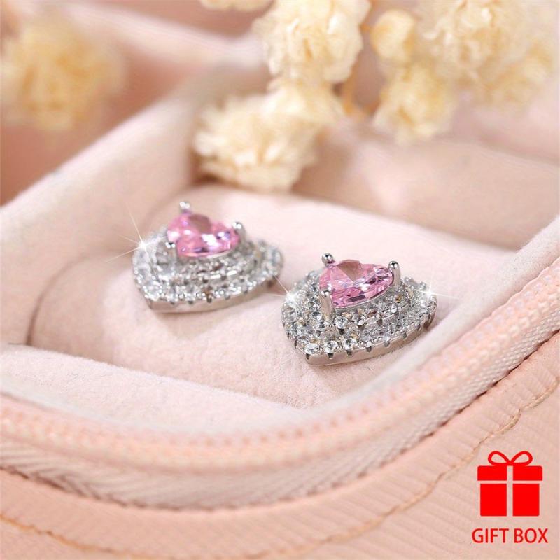 Dazzling heart-shaped cubic zirconia stud earrings featuring a durable copper base with sparkling synthetic stones. Perfect for gifting and suitable for all seasons.