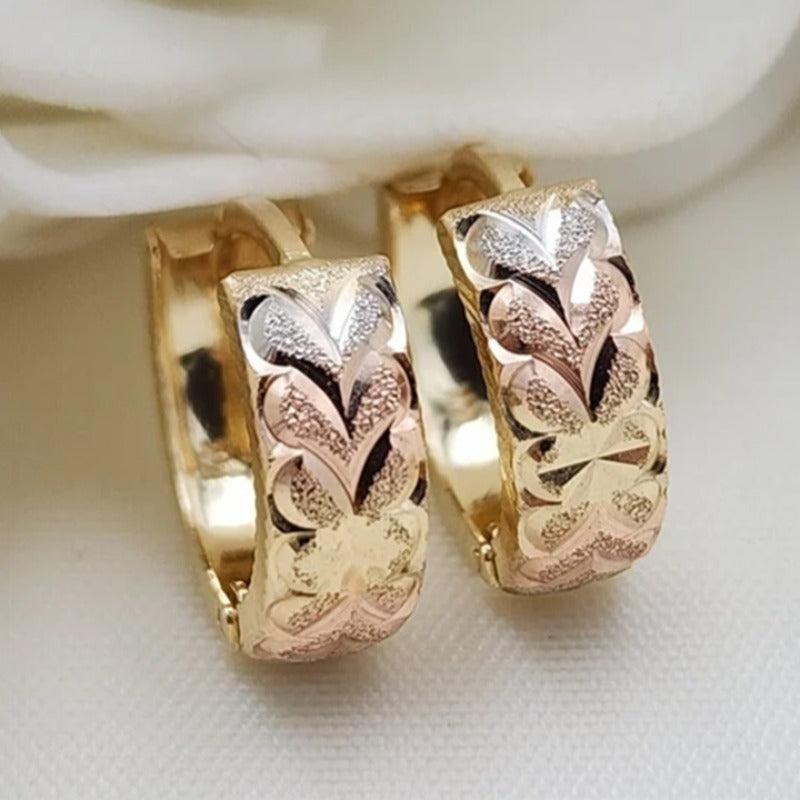 Elevate your style with these glamorous Middle Eastern style heart dangle earrings in golden tone. Adorned with sparkling crystal accents, these earrings are perfect for weddings, banquets, and high-end parties.