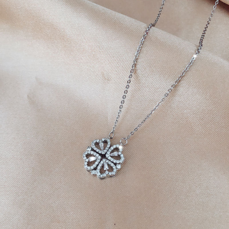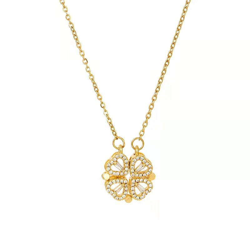 Adorn your neckline with this elegant heart-shaped pendant necklace featuring a four-leaf clover design. The necklace is crafted from stainless steel and sparkles with zircon stones. Perfect for adding a touch of charm to your outfit.