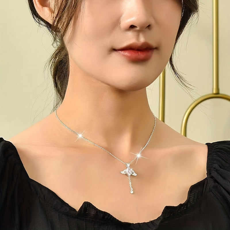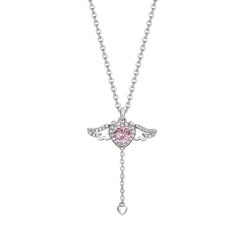 Beautiful heart-shaped pendant necklace with hollow wings pattern, adorned with zircon for a touch of elegance and charm. Ideal as a gift or accessory.
