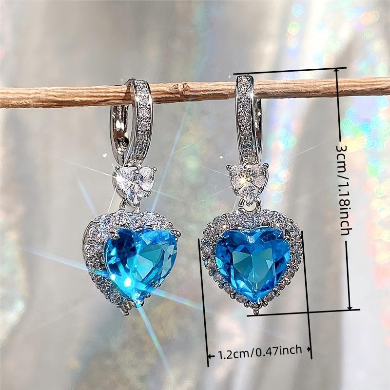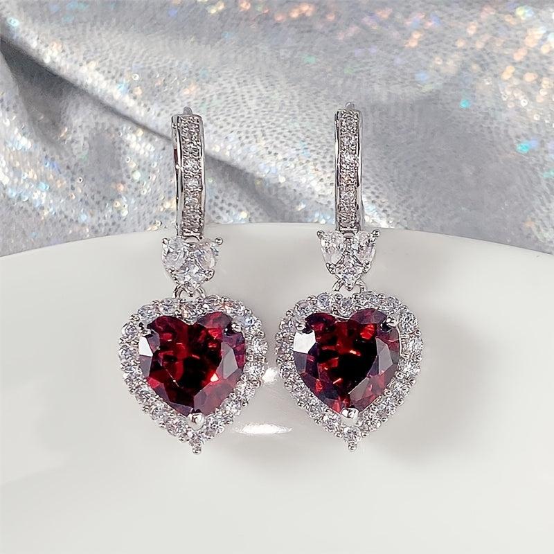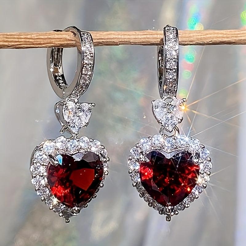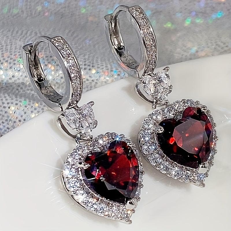 These stunning hoop earrings feature a heart-shaped pendant inlaid with synthetic zirconia, perfect for daily wear or special occasions. Show your love with these elegant earrings.