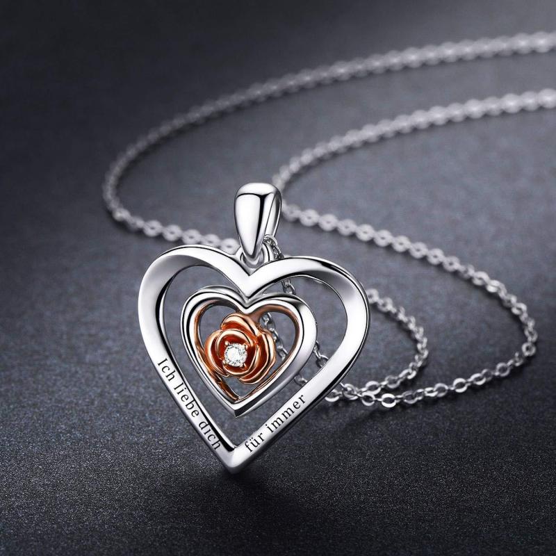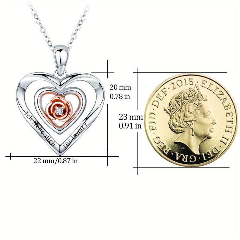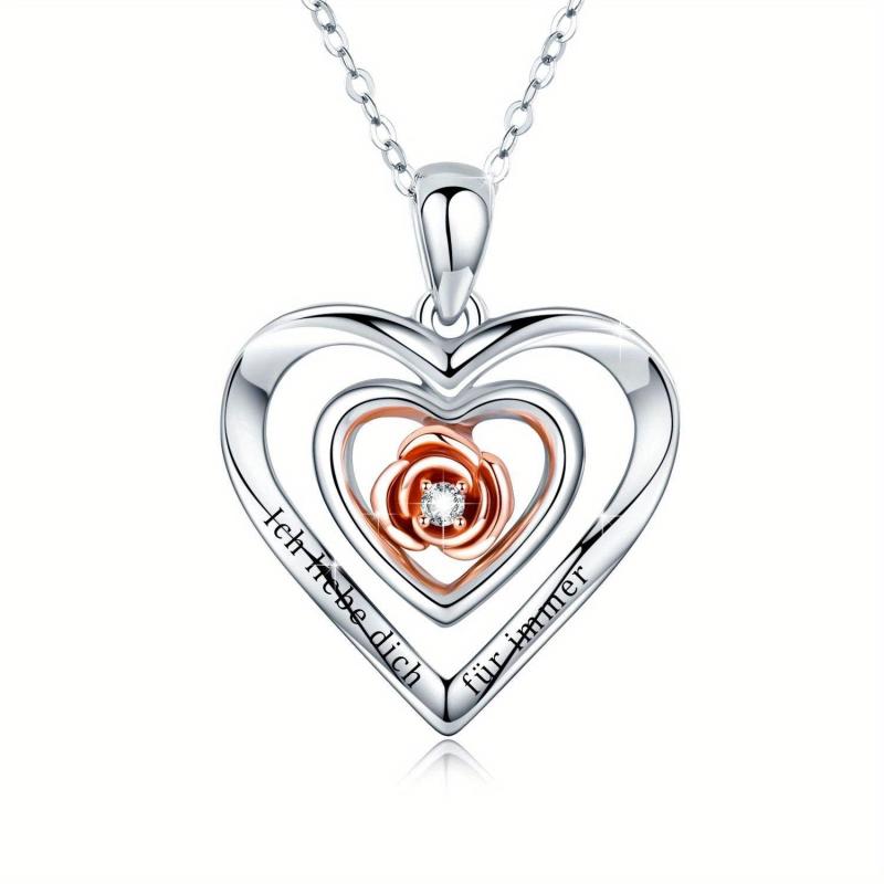 This stunning heart pendant necklace features a rose flower design, crafted from 925 sterling silver. A romantic and elegant piece of jewelry ideal for weddings, birthdays, or any special occasion.