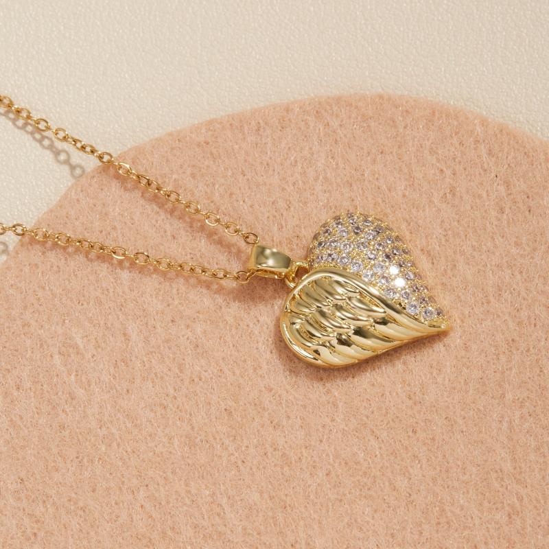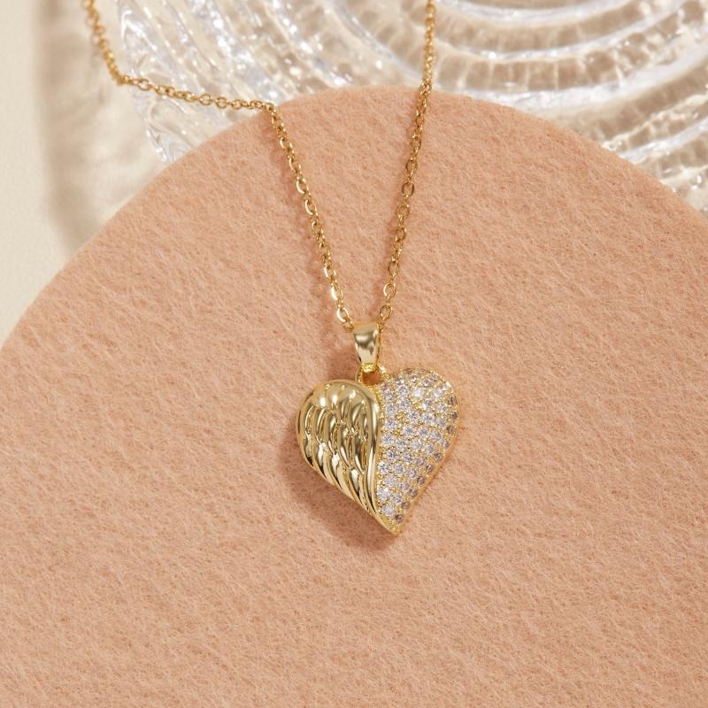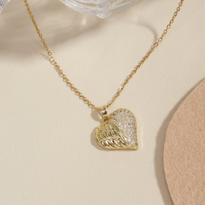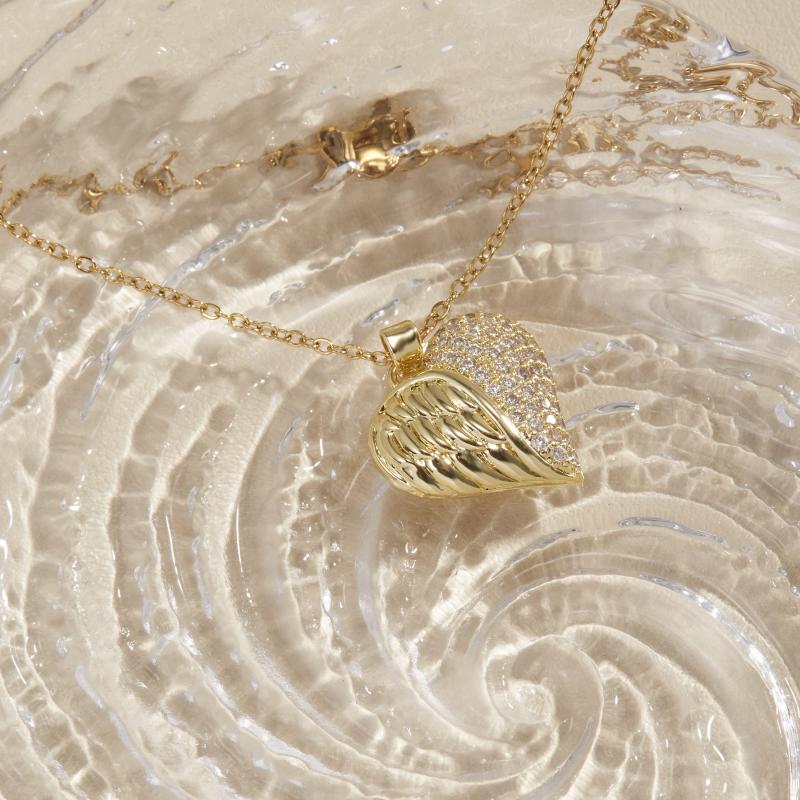 Add a touch of elegance to your outfit with this heart pendant necklace featuring zirconia stones. The necklace is plated with 18K gold for a luxurious look.