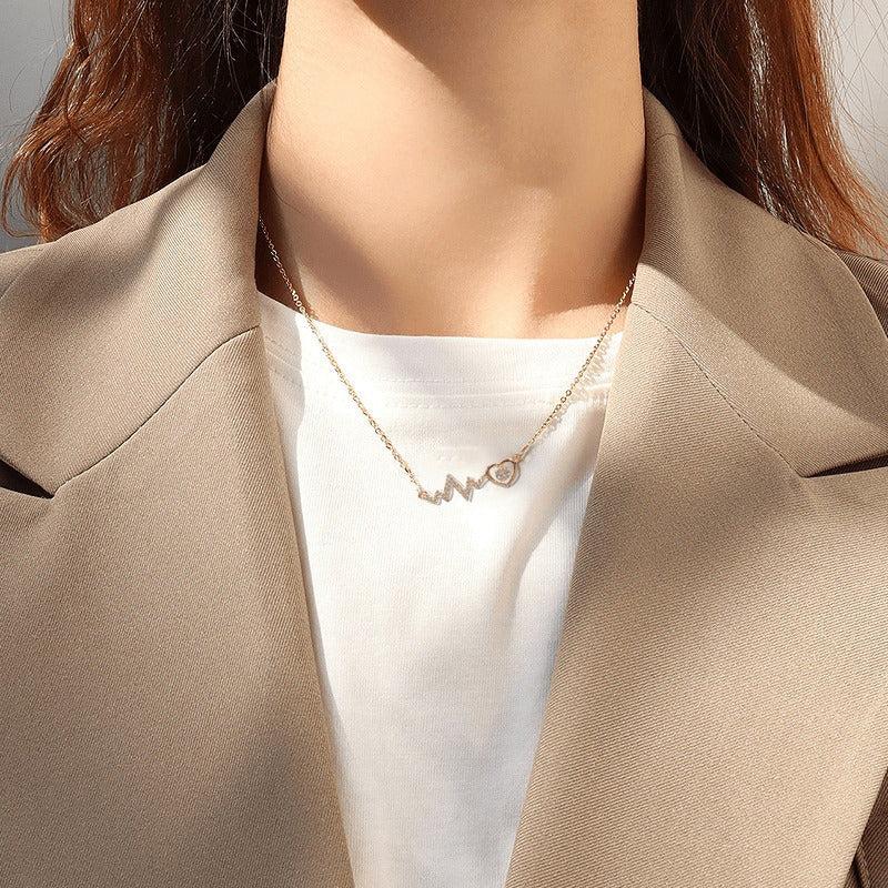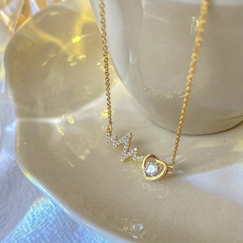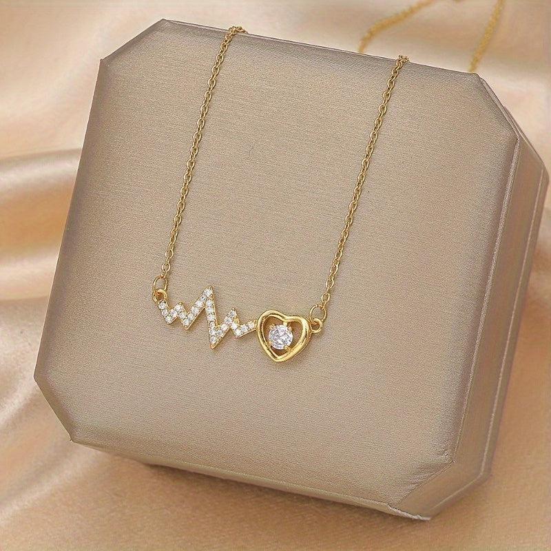 Add a touch of glamour to your look with this stunning heart pendant necklace. The necklace features a golden tone stainless steel chain adorned with synthetic zirconia stones, making it perfect for daily wear and parties. It also makes for a thoughtful gift for a special woman in your life.