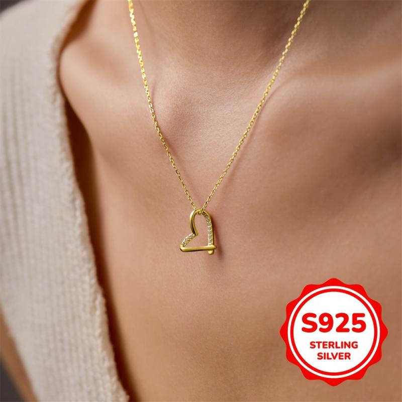 This stunning AIBELOPY S925 Silver pendant features an irregular hollow love heart design adorned with synthetic zirconia, perfect for Valentine's or as a gift for friends.