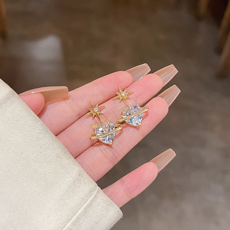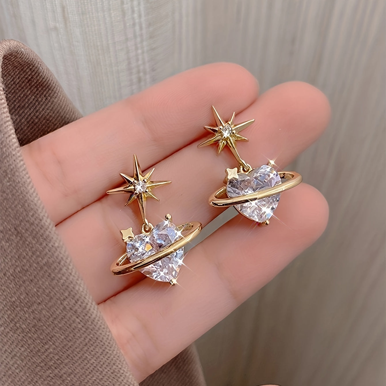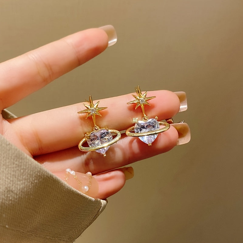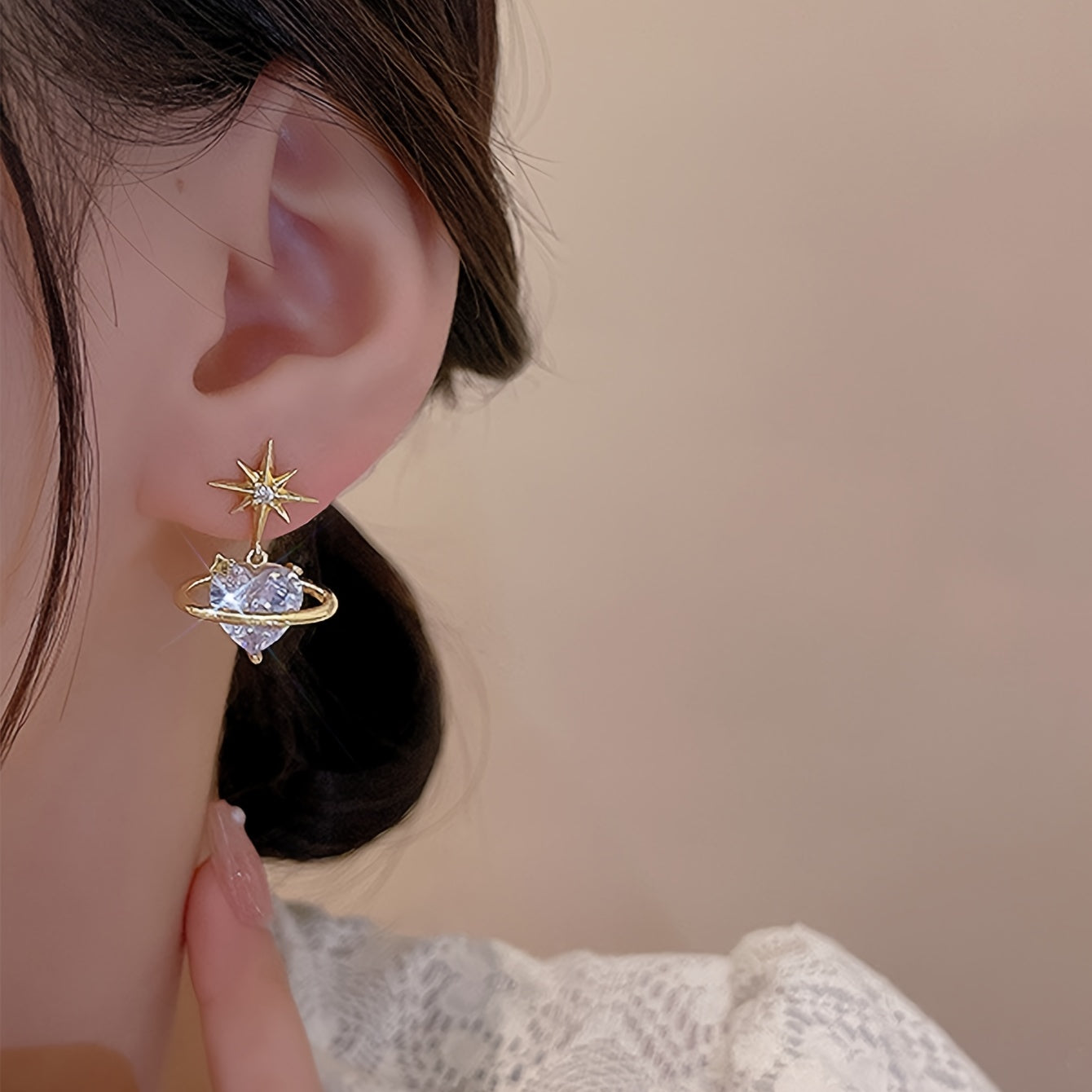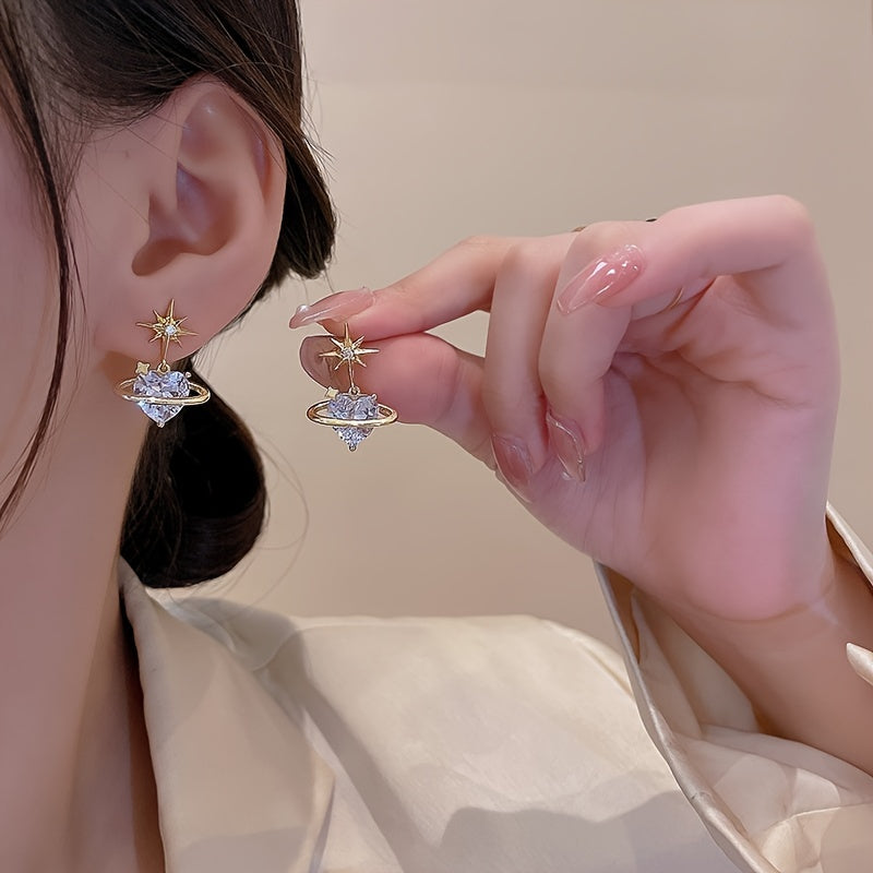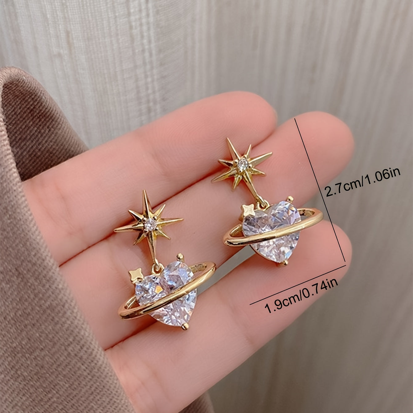 Add a touch of glamour to your daily look with these stylish dangle earrings. The heart planet and argyle design with zircon decorations make them perfect for casual wear.