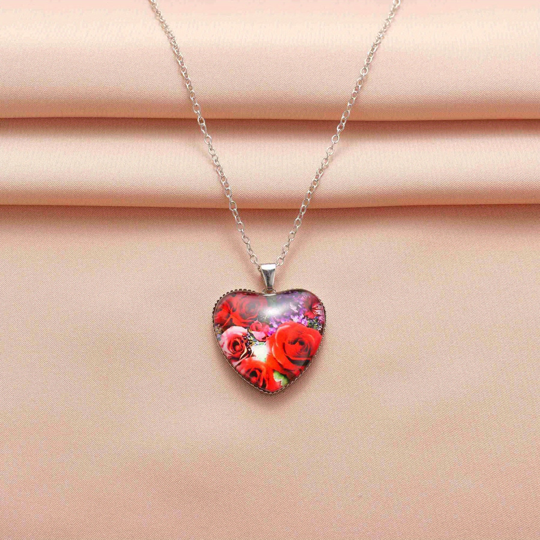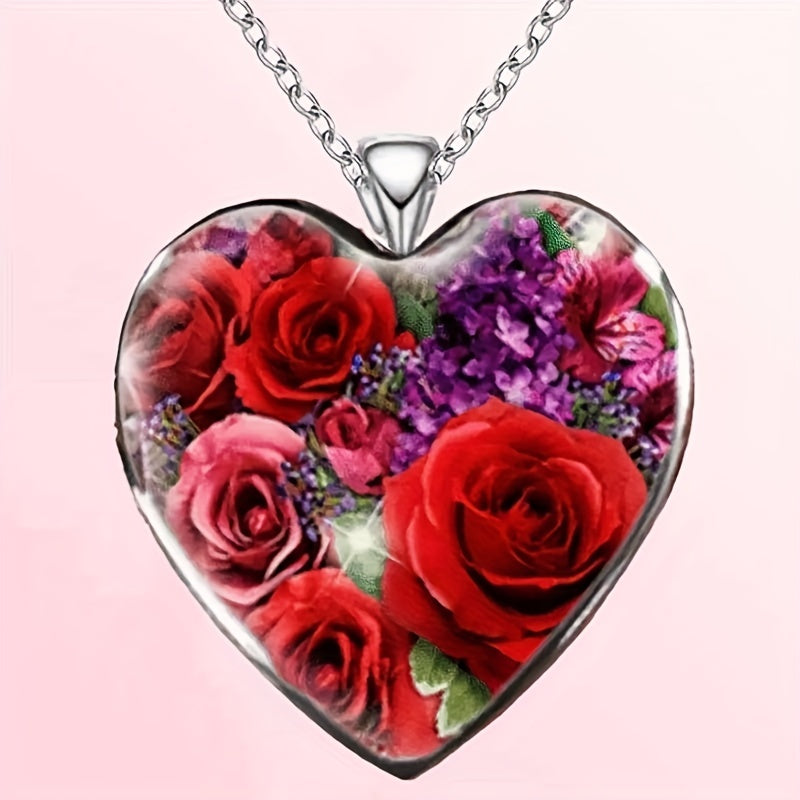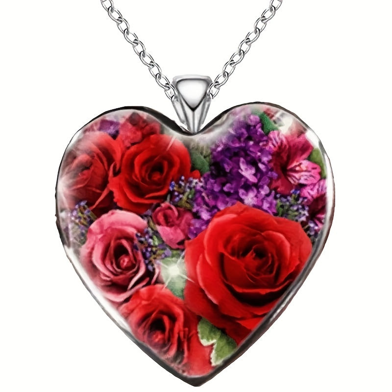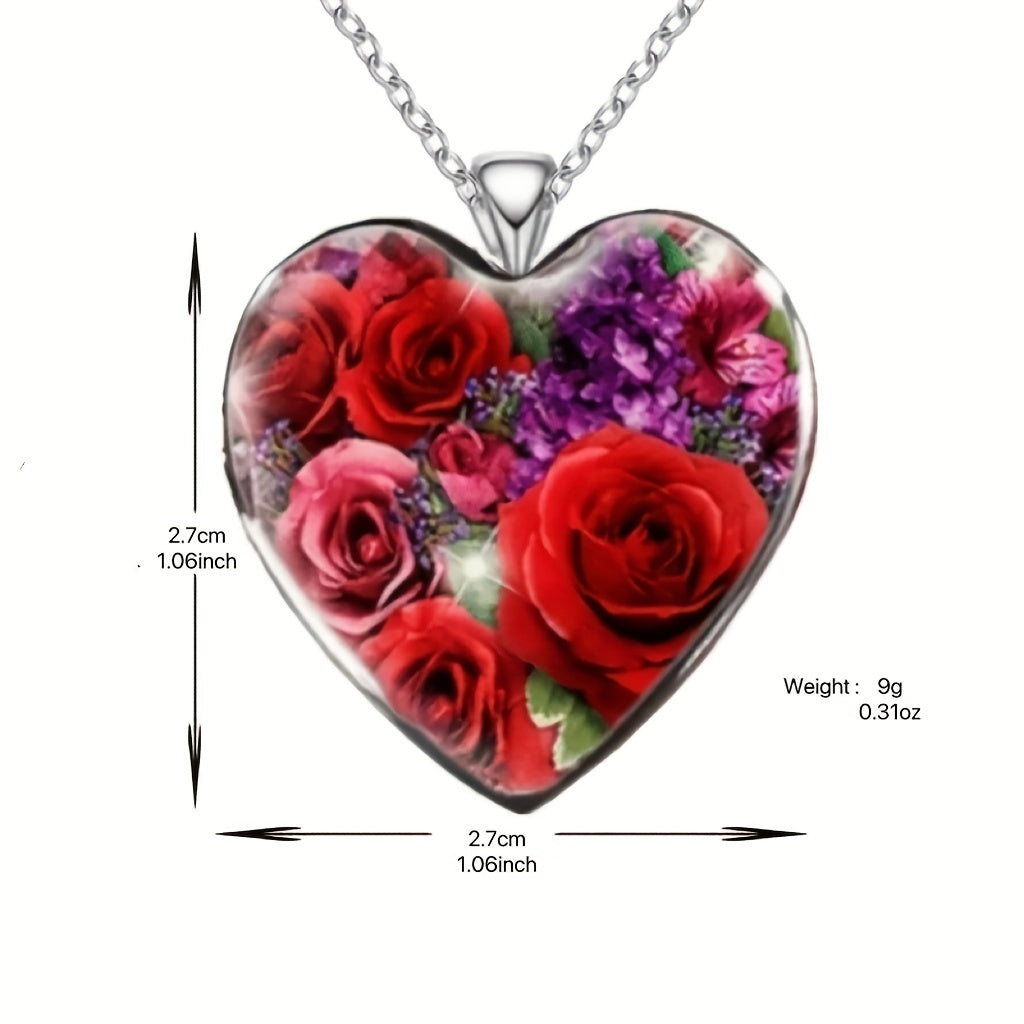 This zinc alloy pendant features a creative heart rose design, making it a perfect gift for men, couples, or women. It adds a touch of elegance and style to any outfit.