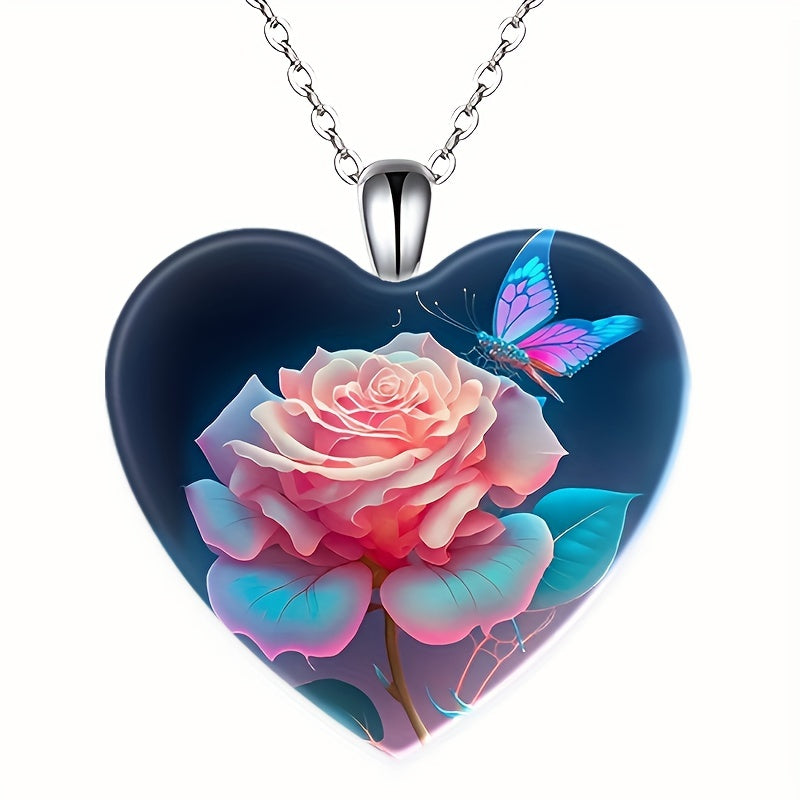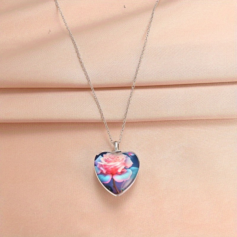 This zinc alloy pendant features a heart shape crystal with a delicate flower design, perfect for men's party jewelry. Ideal gift for men, women, or friends.