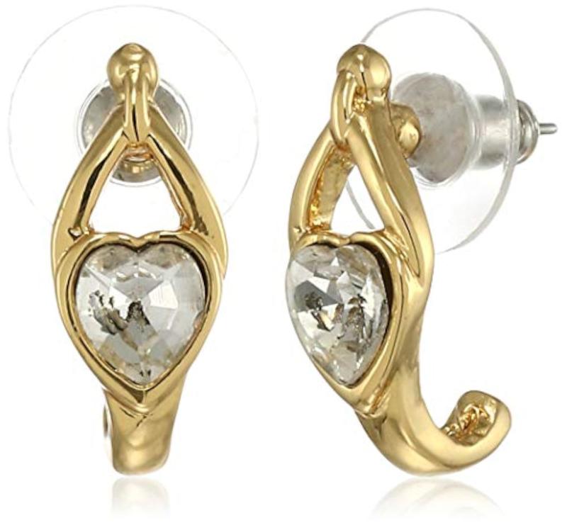 Add a touch of glamour with these heart-shaped pink crystal earrings. Made with 24Kt plated material, they are perfect for any occasion.