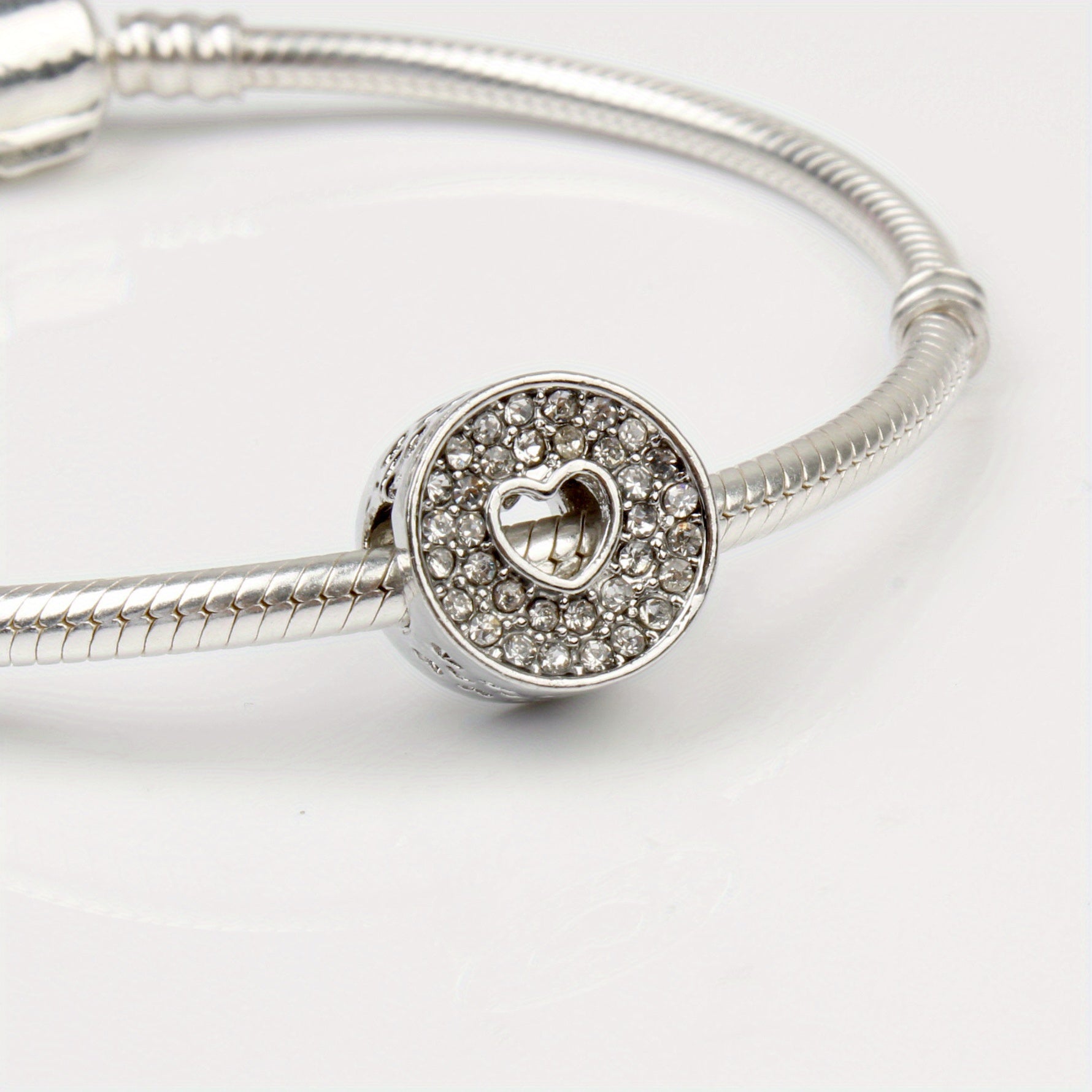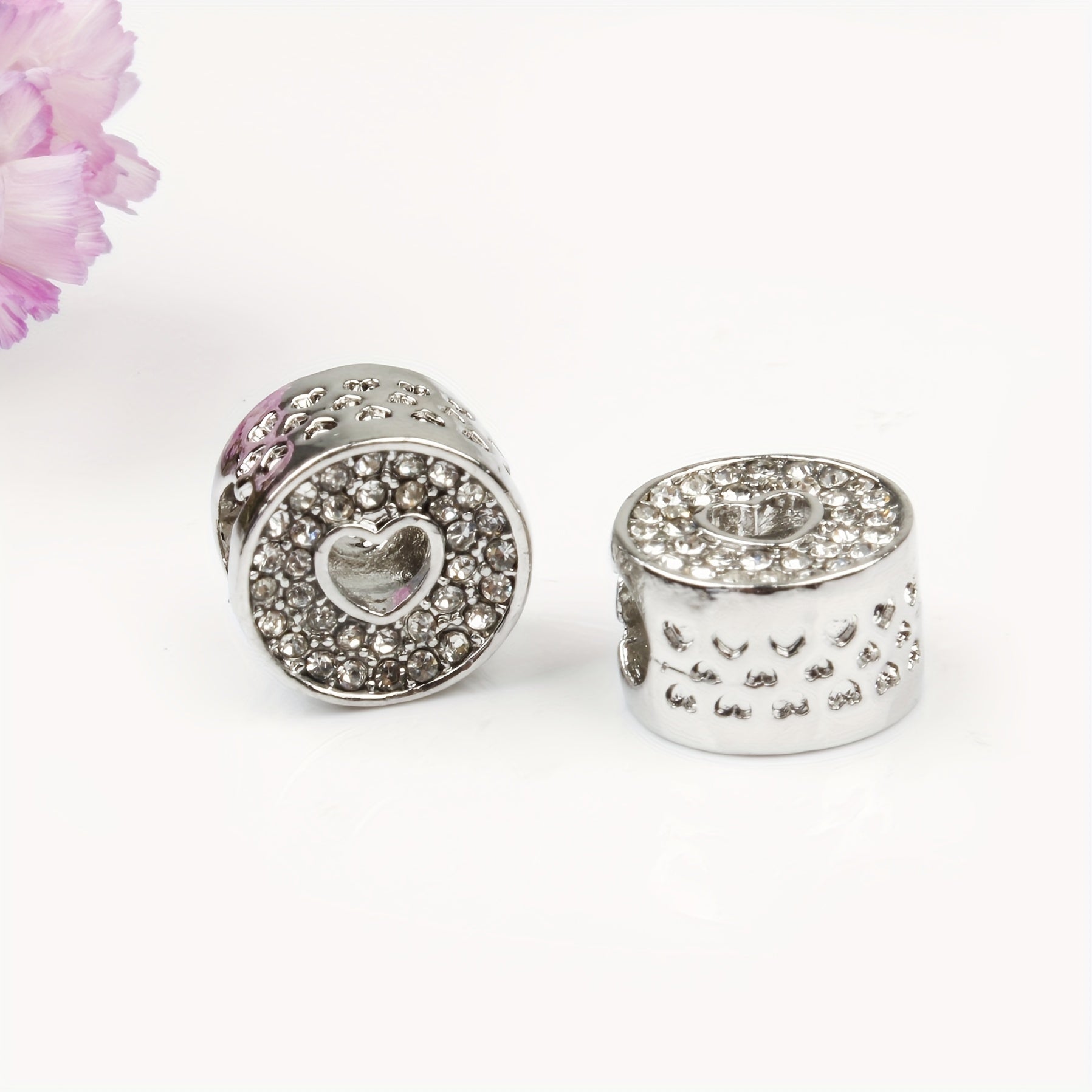 Add some sparkle to your DIY bracelet with this silvery heart-shaped alloy bead featuring rhinestone decoration. The large hole allows for easy stringing.